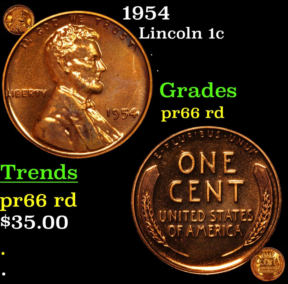 1954 Lincoln Cent 1c Grades Gem+ Proof Red.