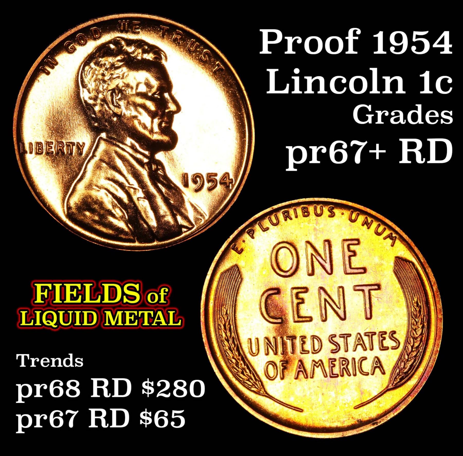 Proof 1954 Lincoln Cent 1c Grades Proof Gem++Red.