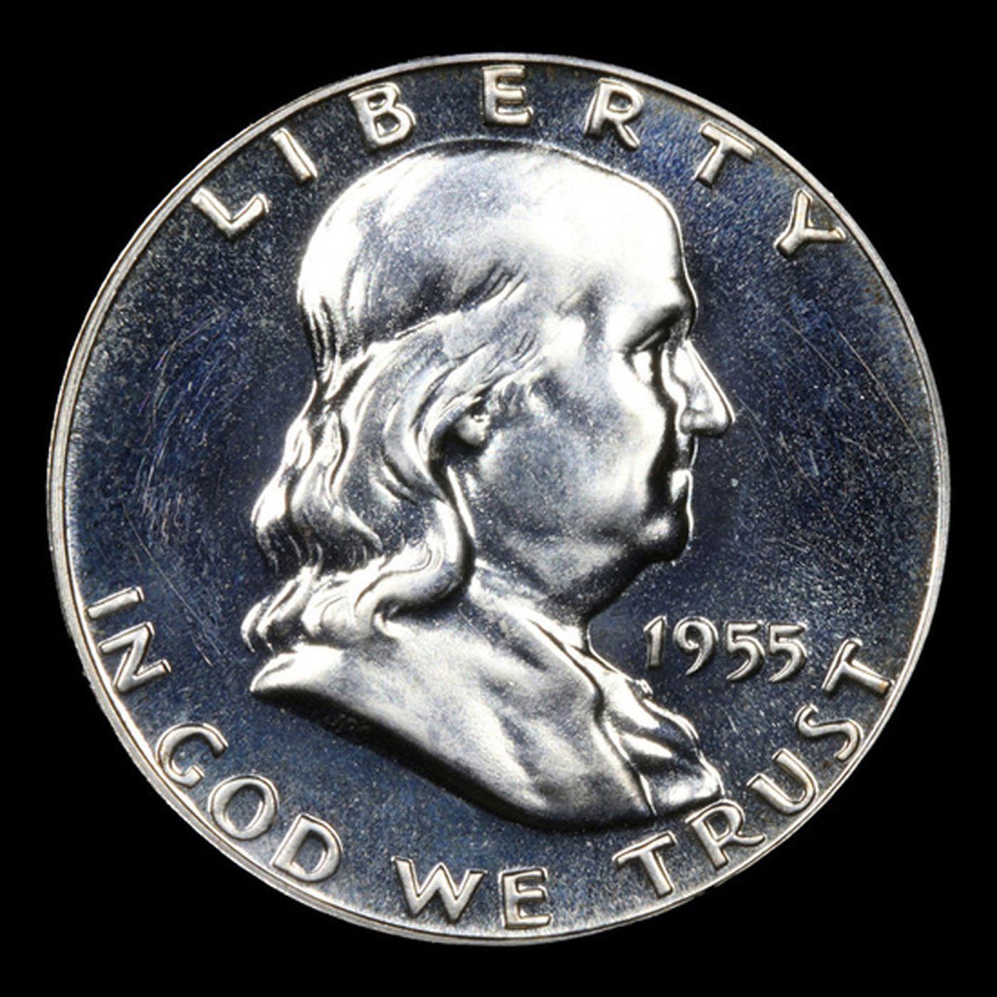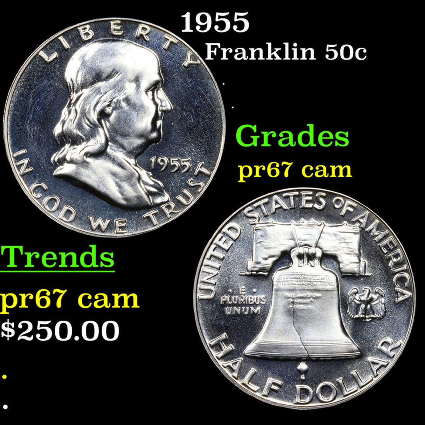 1955 Franklin Half Dollar 50c Grades GEM++ Proof Cameo.
