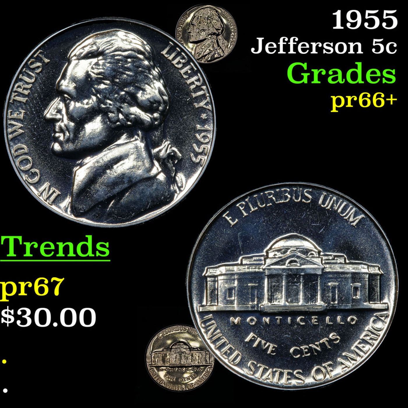 1955 Jefferson Nickel 5c Grades GEM++ Proof.