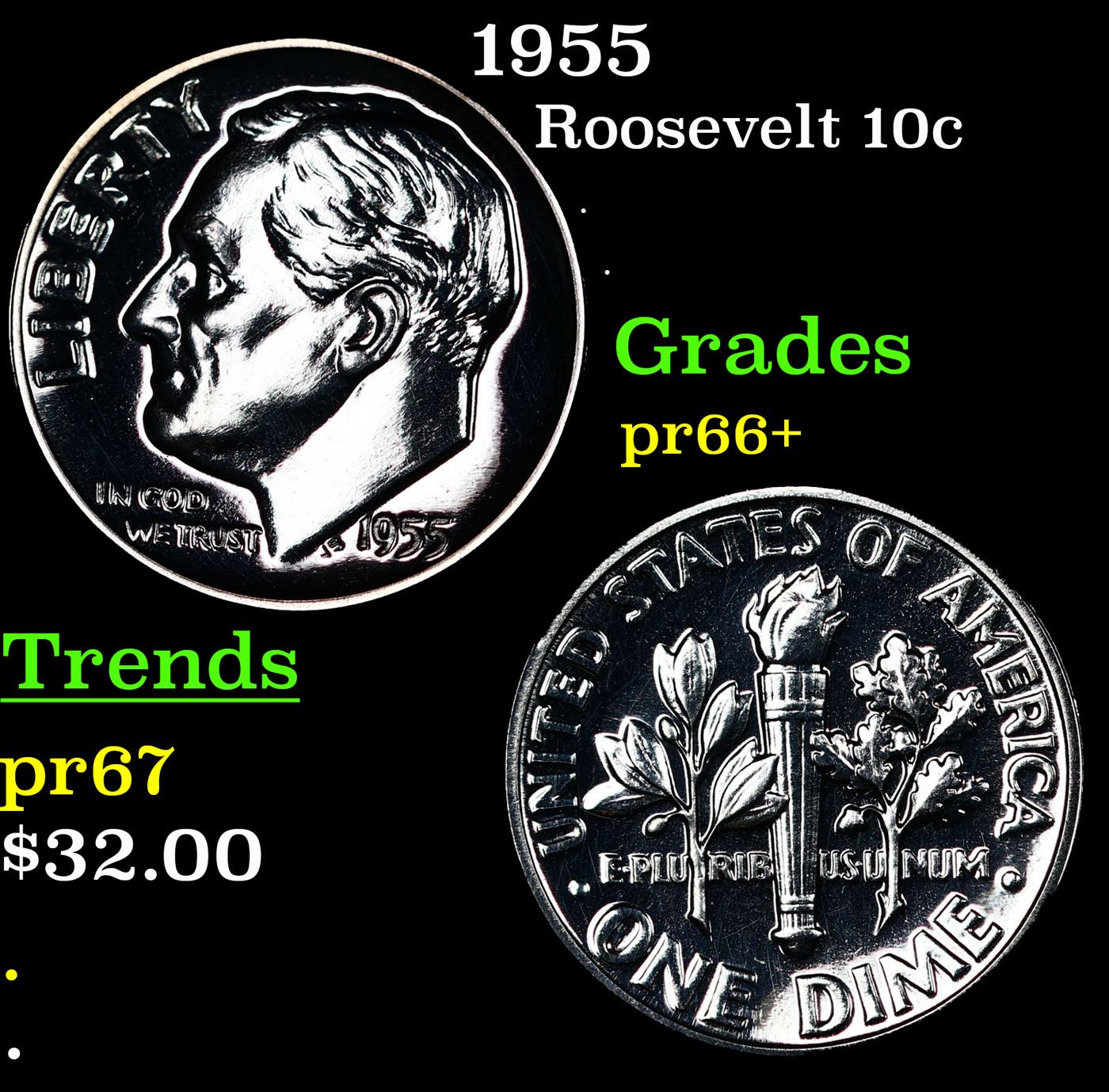 1955 Roosevelt Dime 10c Grades GEM++ Proof.