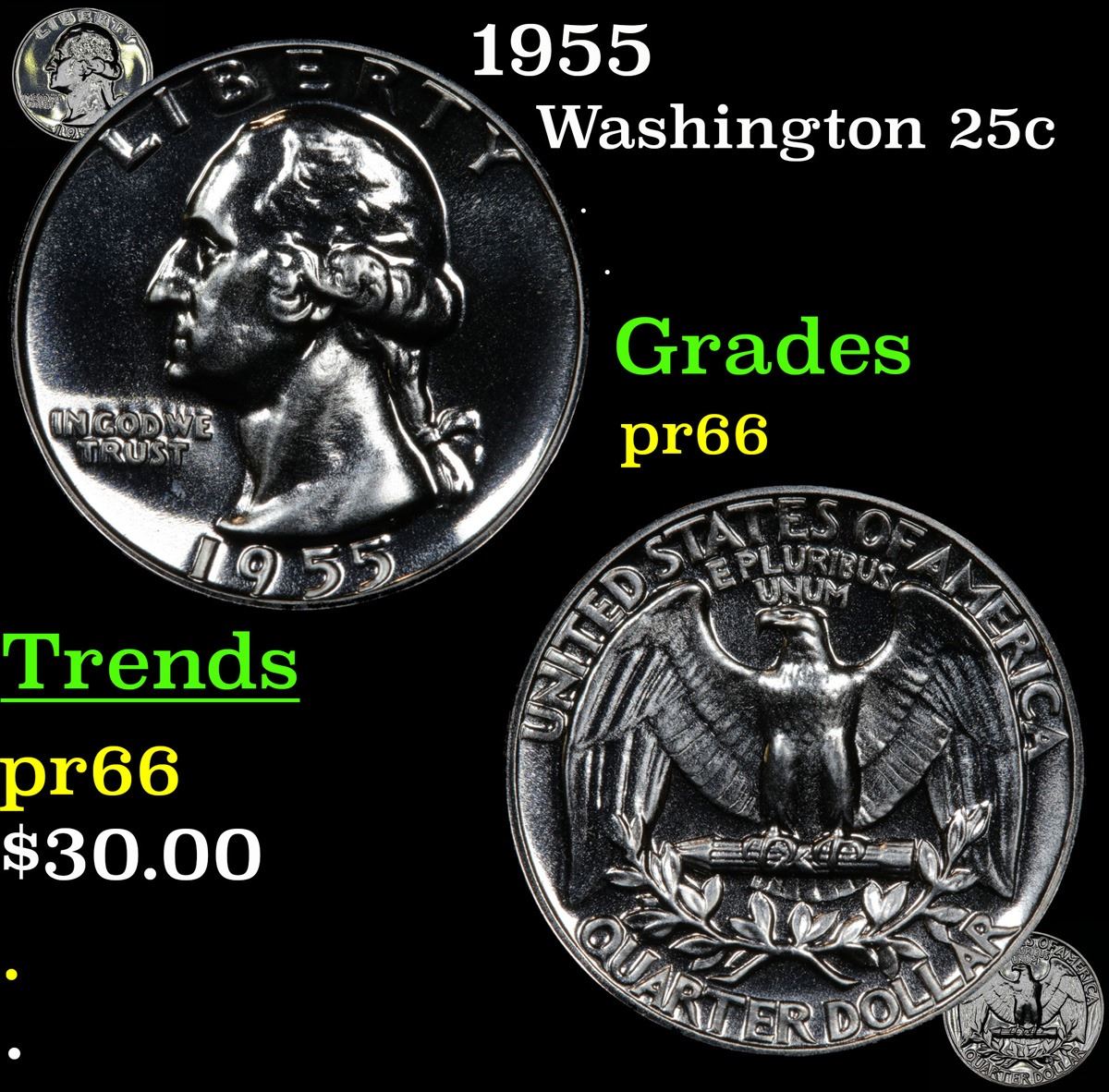 1955 Washington Quarter 25c Grades GEM+ Proof.