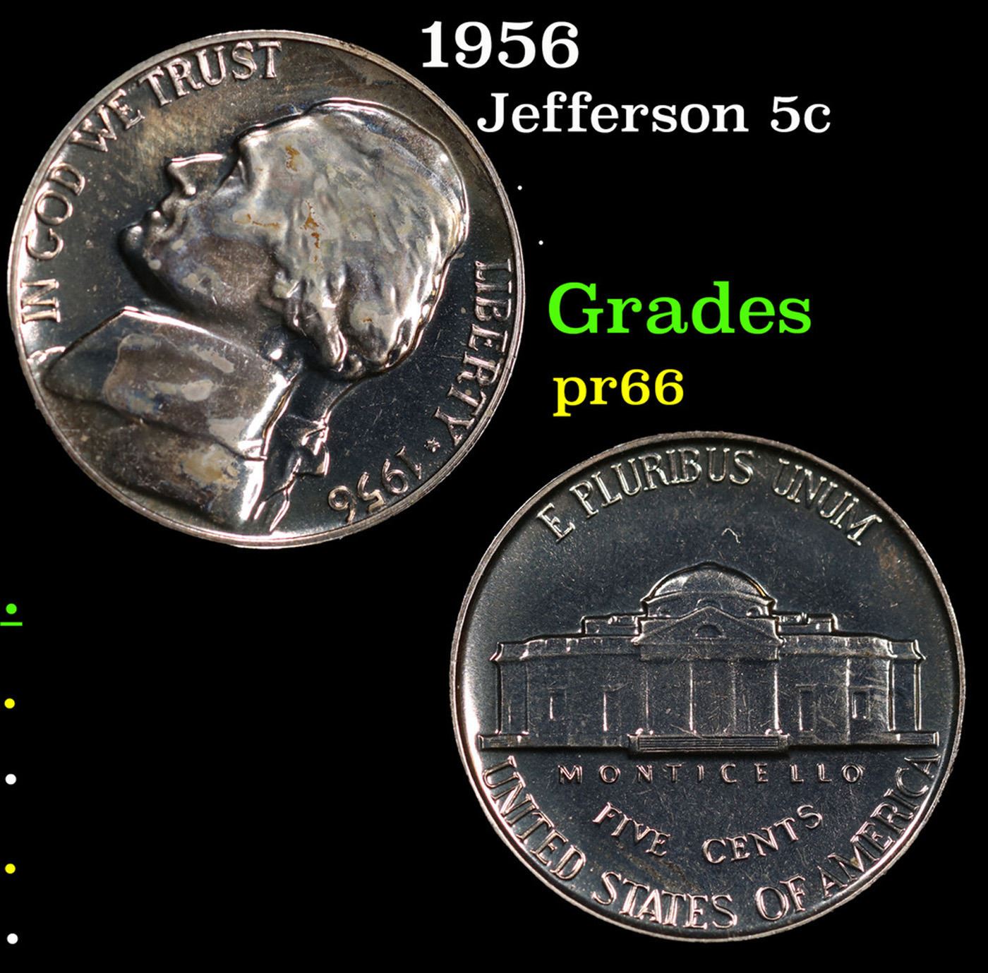 1956 Jefferson Nickel 5c Grades GEM+ Proof.