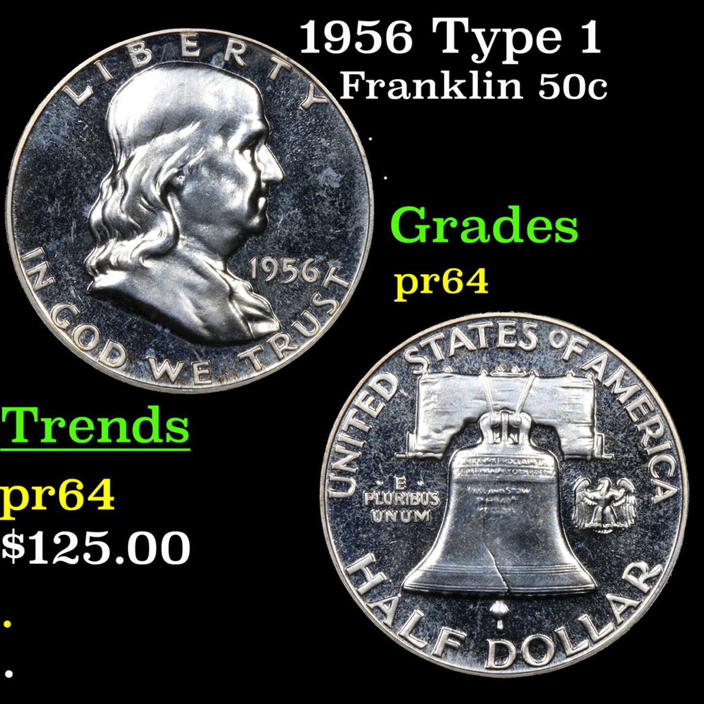 1956 Type 1 Franklin Half Dollar 50c Grades Choice Proof.