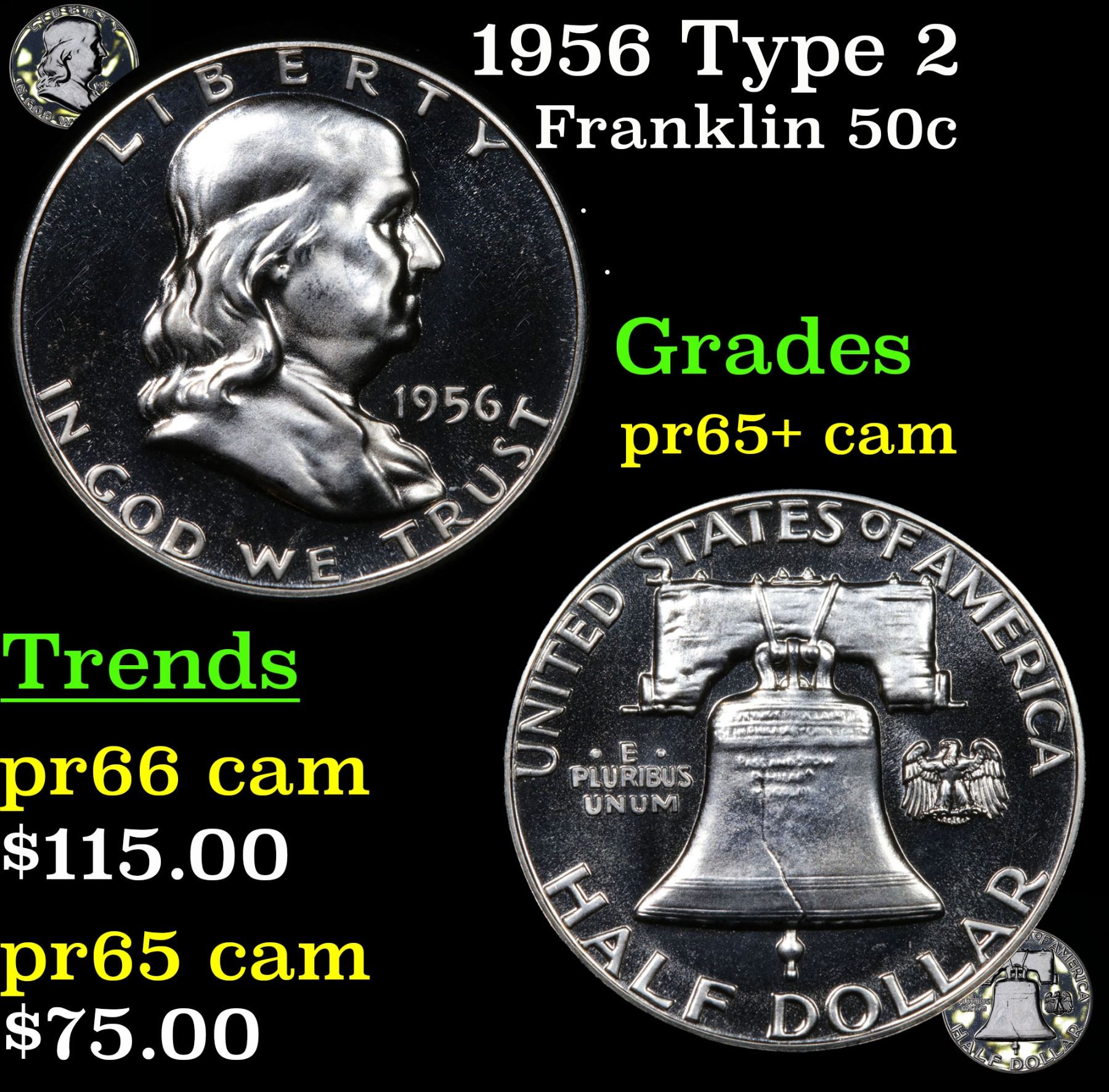 1956 Type 2 Franklin Half Dollar 50c Grades GEM+ Proof Cameo.