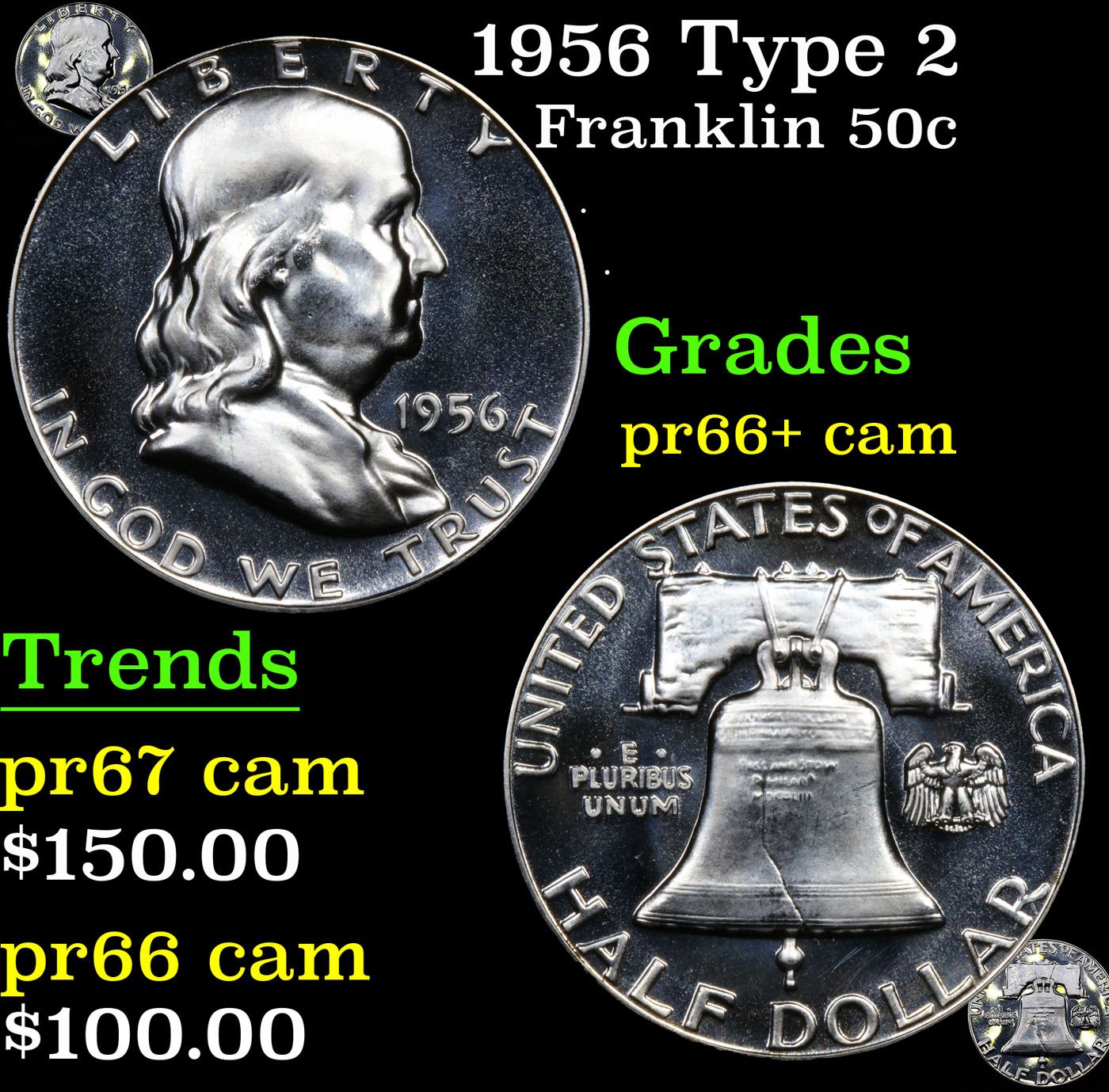 1956 Type 2 Franklin Half Dollar 50c Grades GEM++ Proof Cameo.