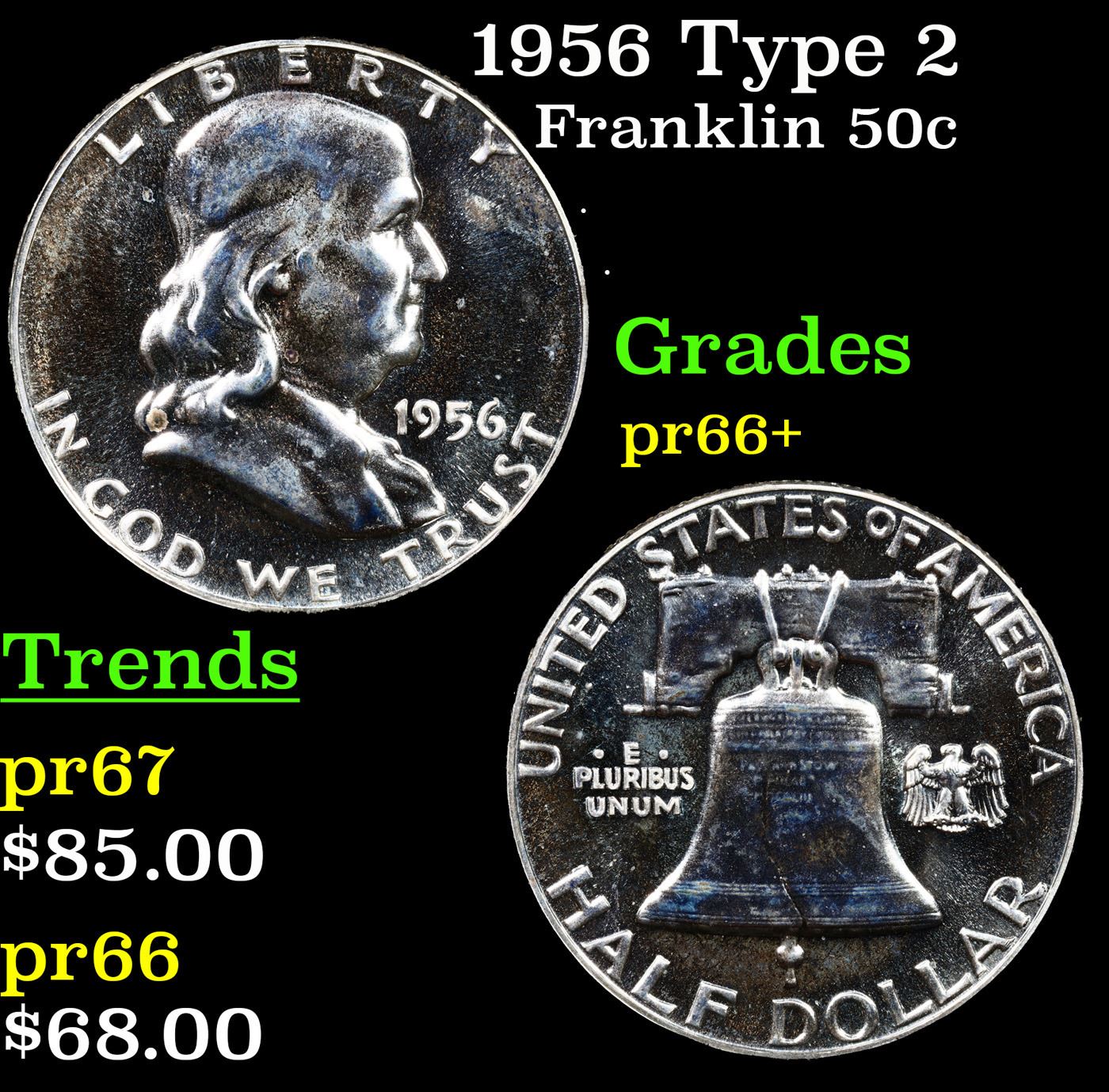 1956 Type 2 Franklin Half Dollar 50c Grades GEM++ Proof.
