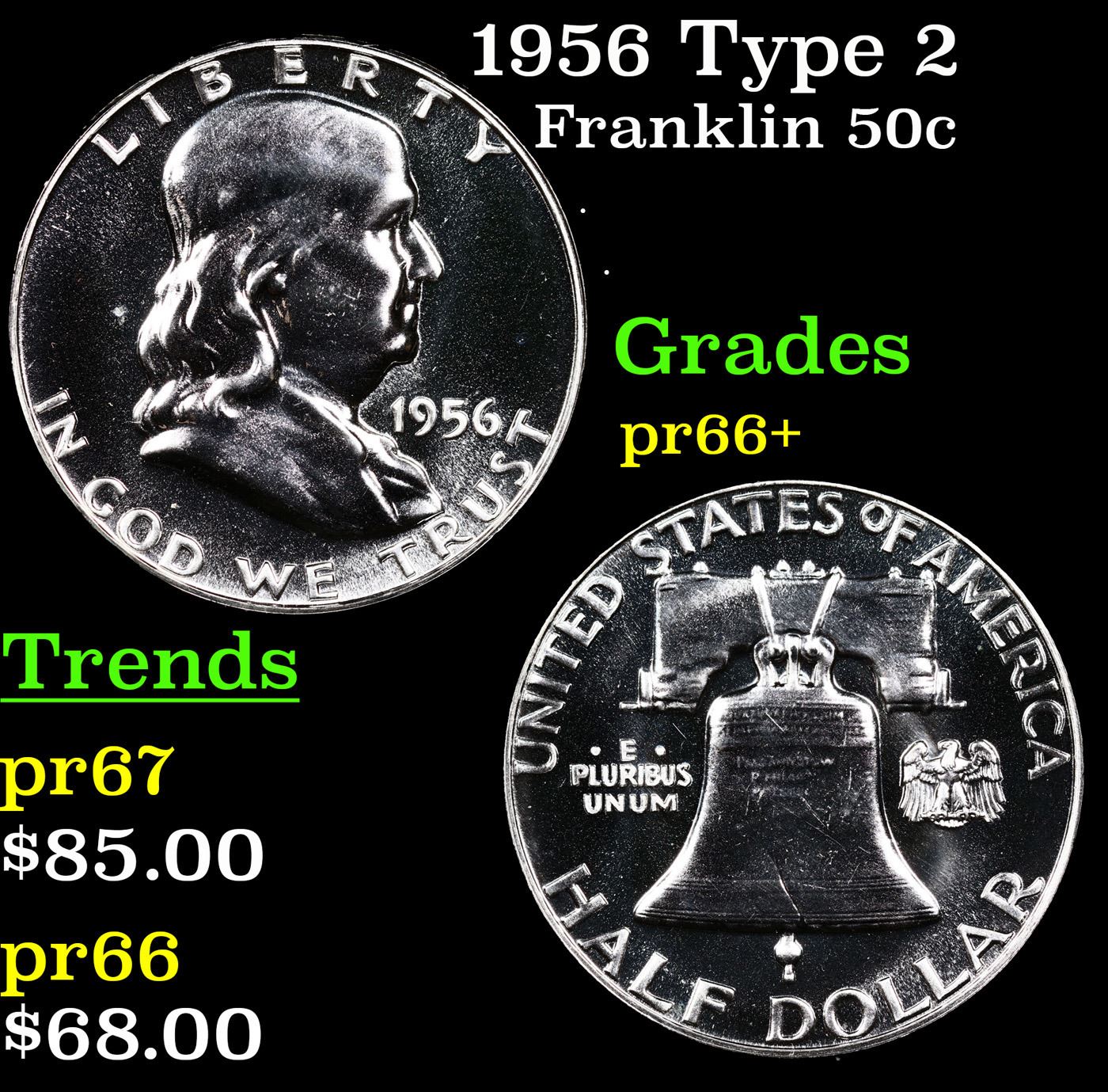 1956 Type 2 Franklin Half Dollar 50c Grades GEM++ Proof.