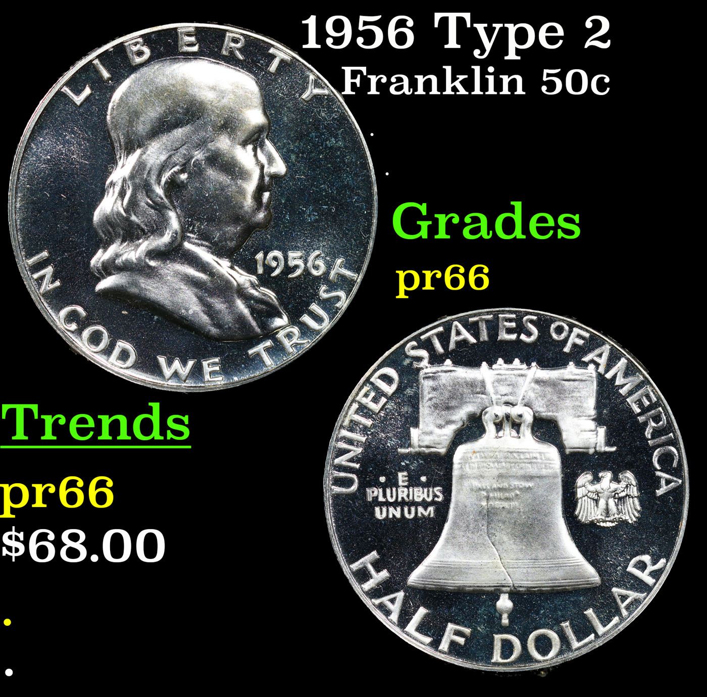 1956 Type 2 Franklin Half Dollar 50c Grades GEM+ Proof.