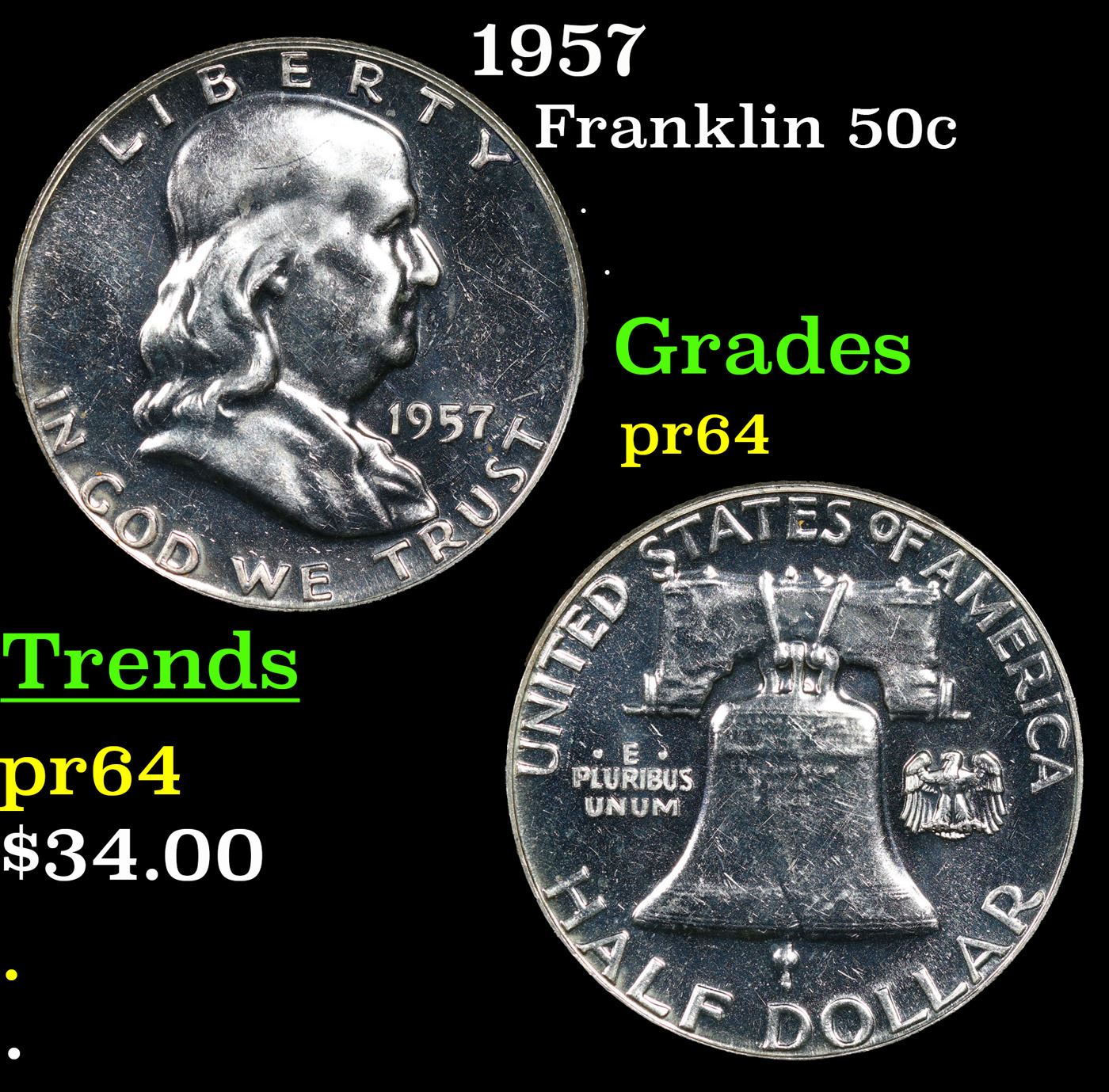 1957 Franklin Half Dollar 50c Grades Choice Proof.