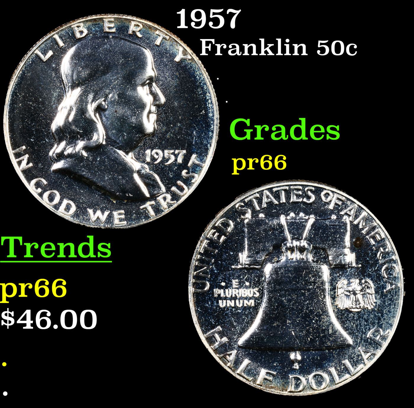 1957 Franklin Half Dollar 50c Grades GEM+ Proof.