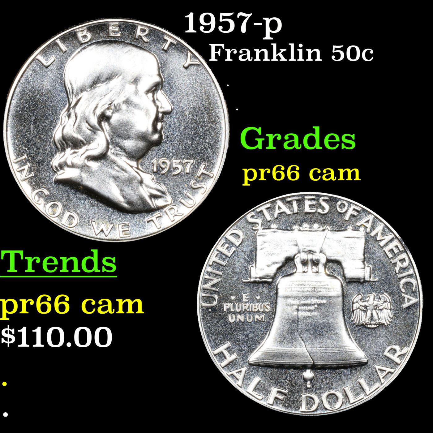 1957-p Franklin Half Dollar 50c Grades GEM+ Proof Cameo.