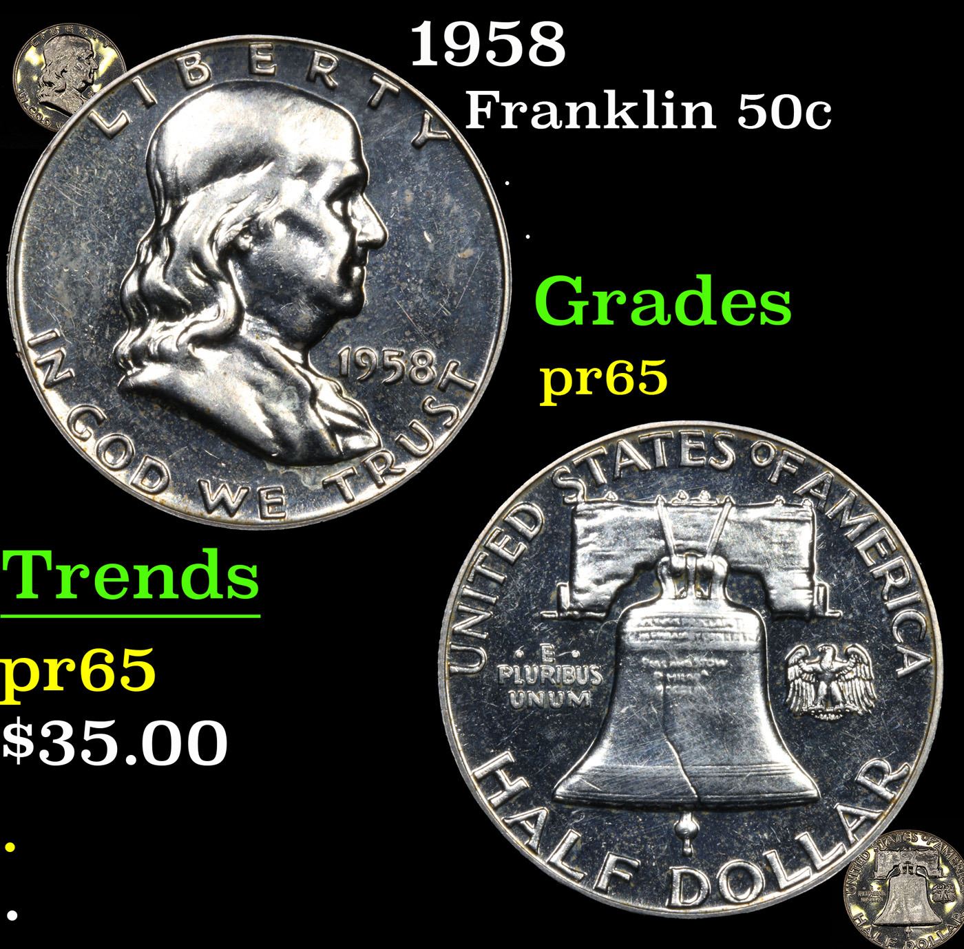 1958 Franklin Half Dollar 50c Grades GEM Proof.