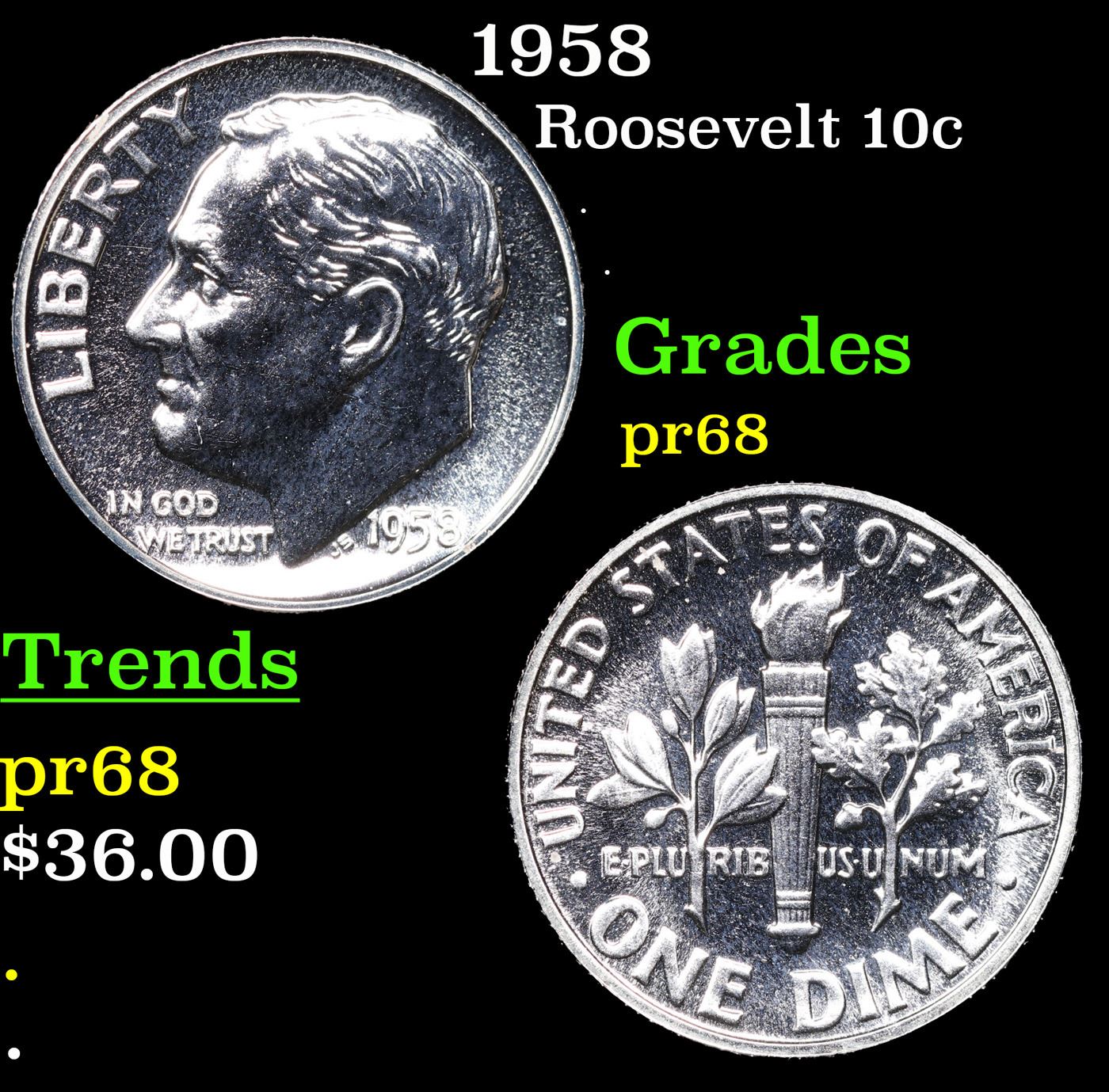 1958 Roosevelt Dime 10c Grades GEM++ Proof.