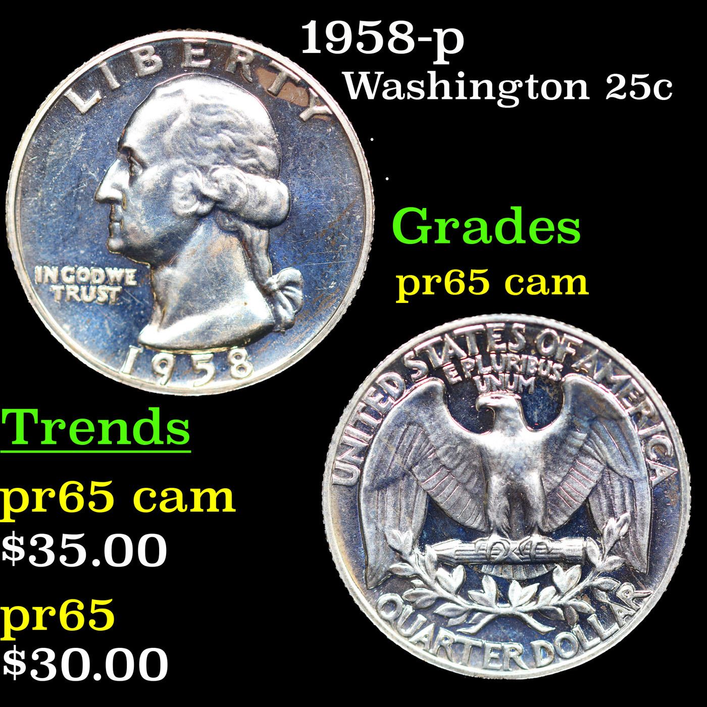 1958-p Washington Quarter 25c Grades GEM Proof Cameo.