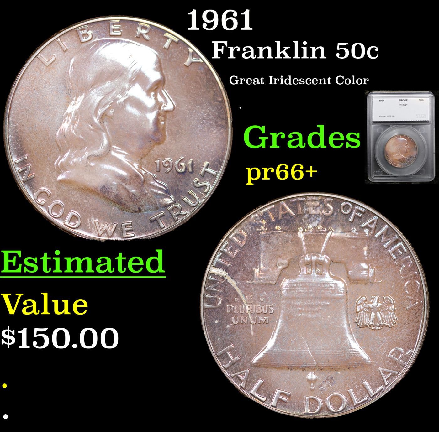 1961 Franklin Half Dollar 50c Graded pr66+ BY SEGS.
