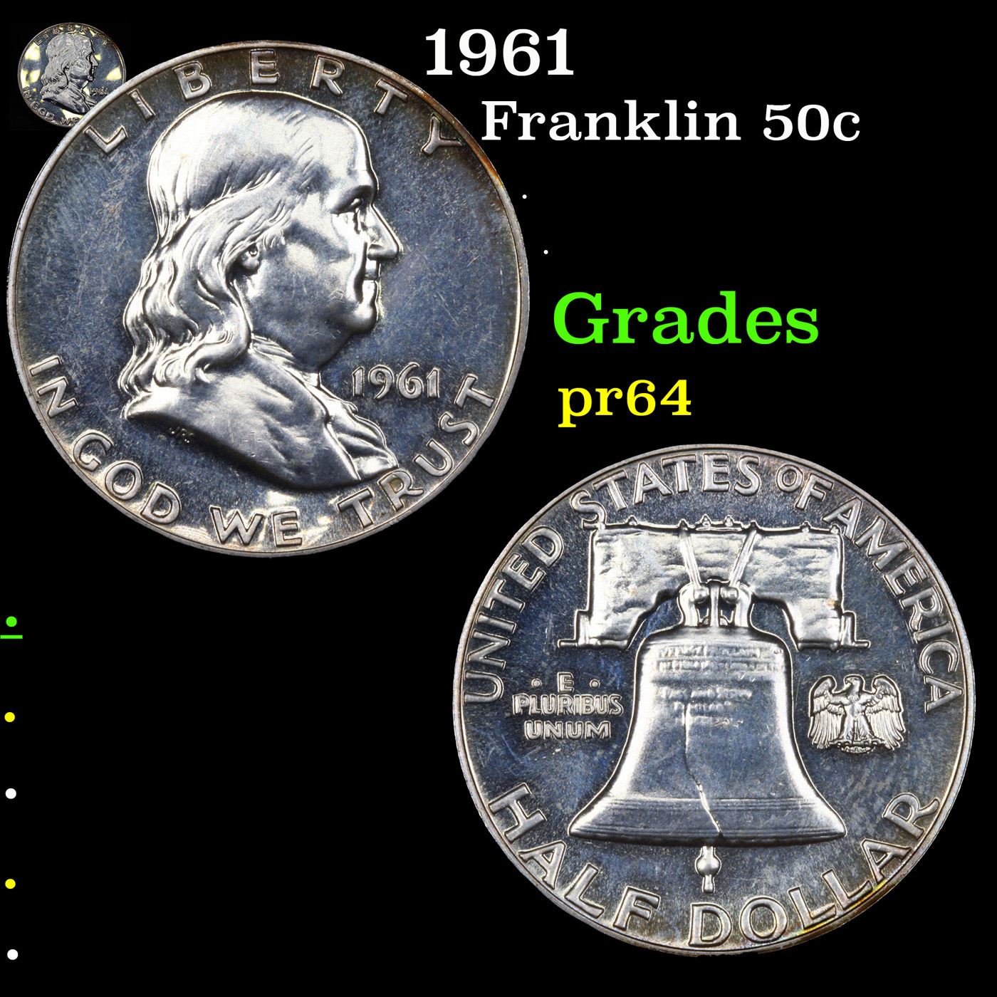 1961 Franklin Half Dollar 50c Grades Choice Proof.