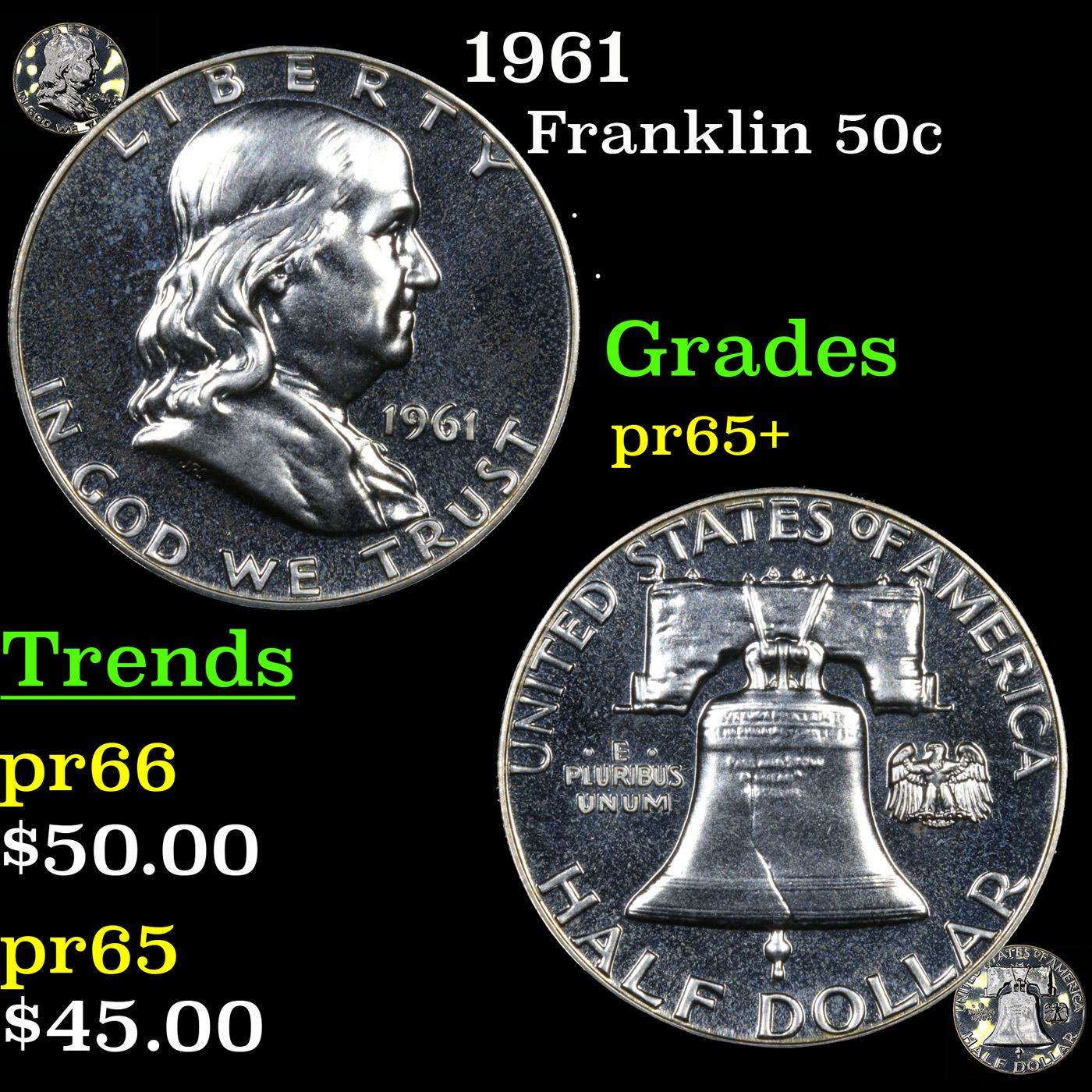 1961 Franklin Half Dollar 50c Grades GEM+ Proof.