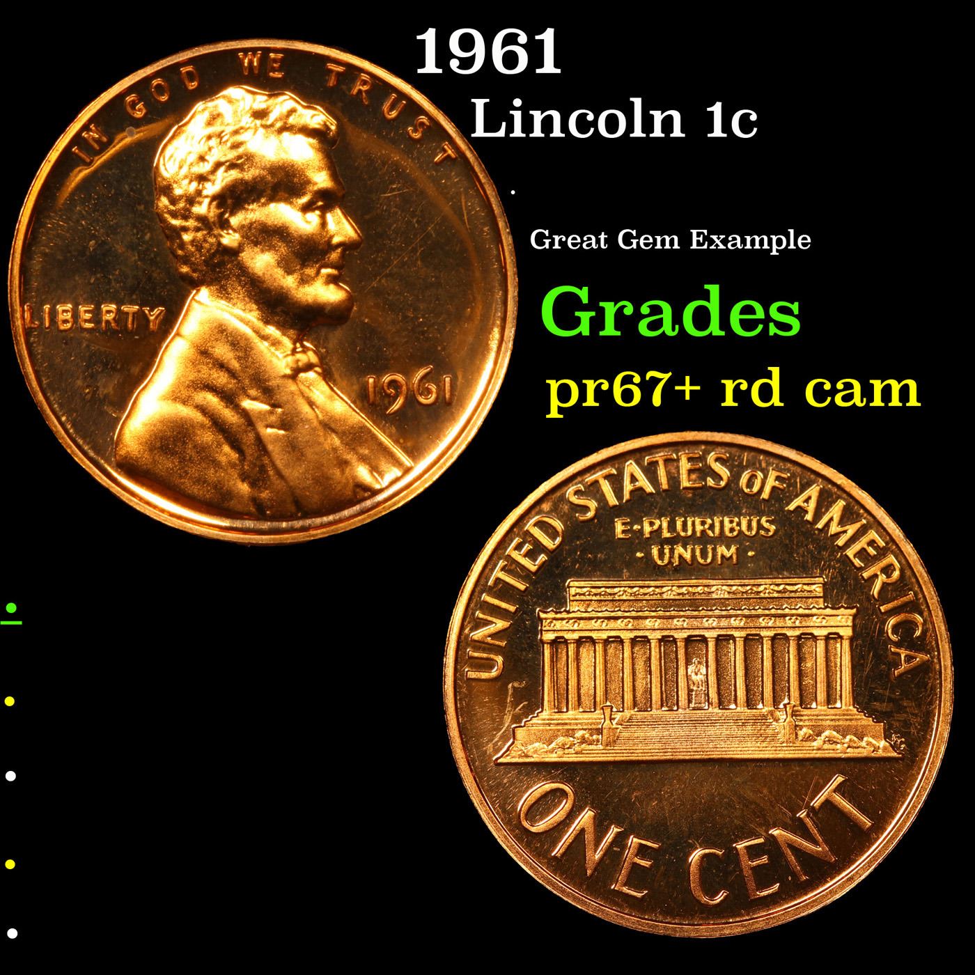 Proof 1961 Lincoln Cent 1c Grades Gem++ Proof Red Cam