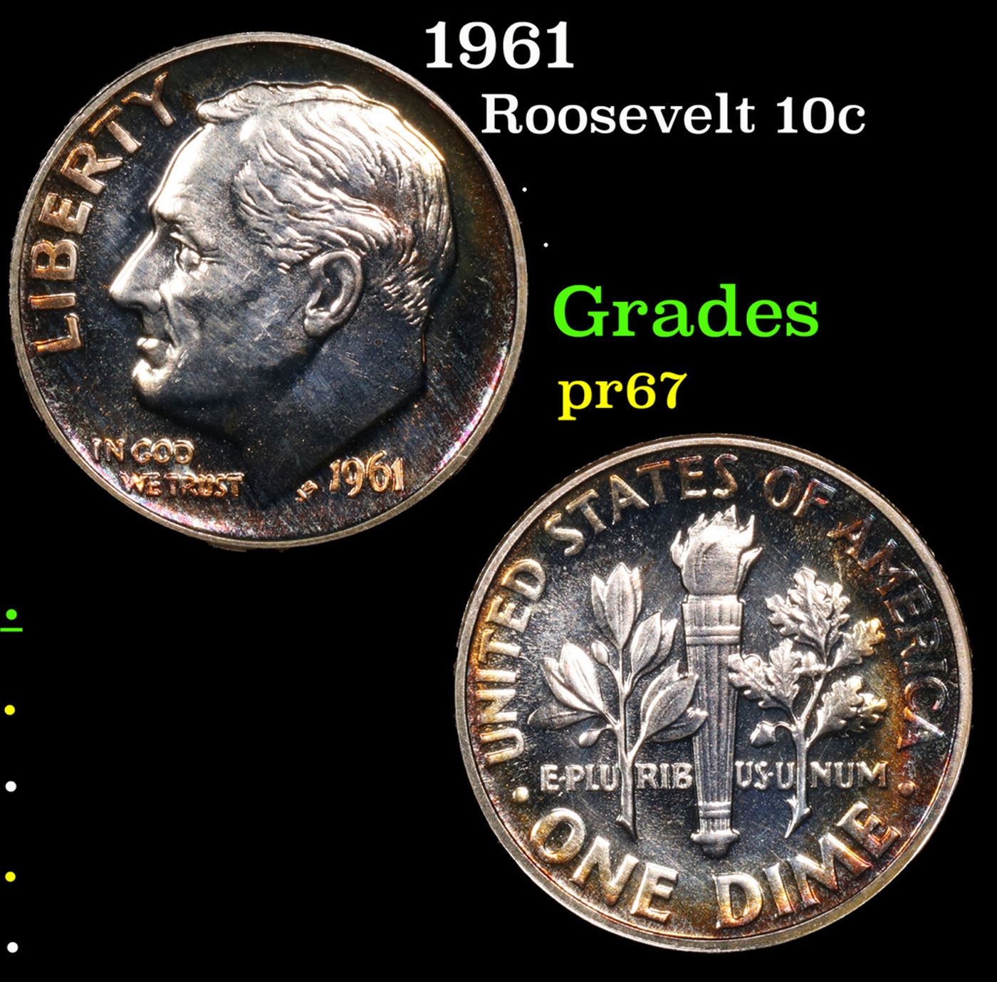 1961 Roosevelt Dime 10c Grades GEM++ Proof.