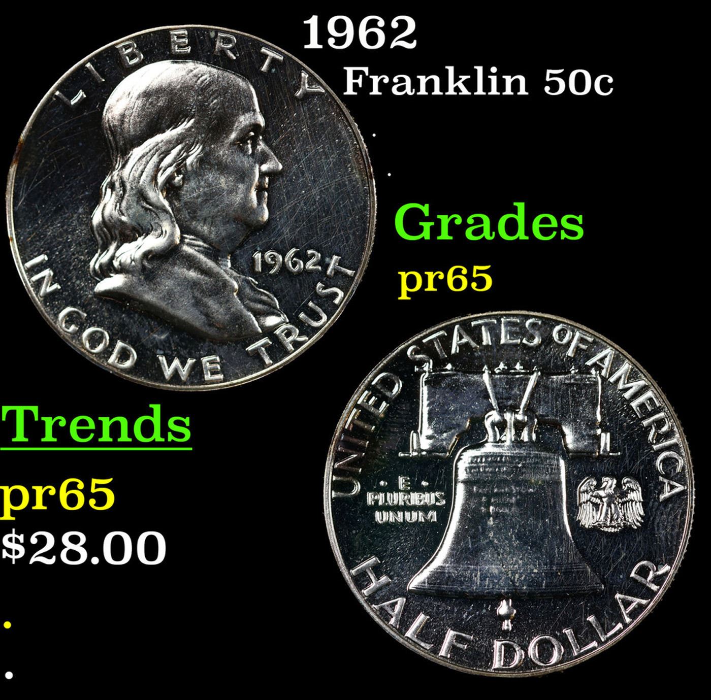 1962 Franklin Half Dollar 50c Grades GEM Proof.