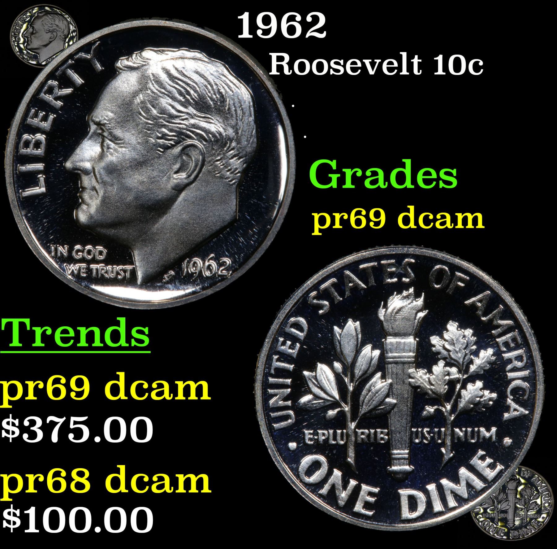 1962 Roosevelt Dime 10c Grades GEM++ Proof Deep Cameo.