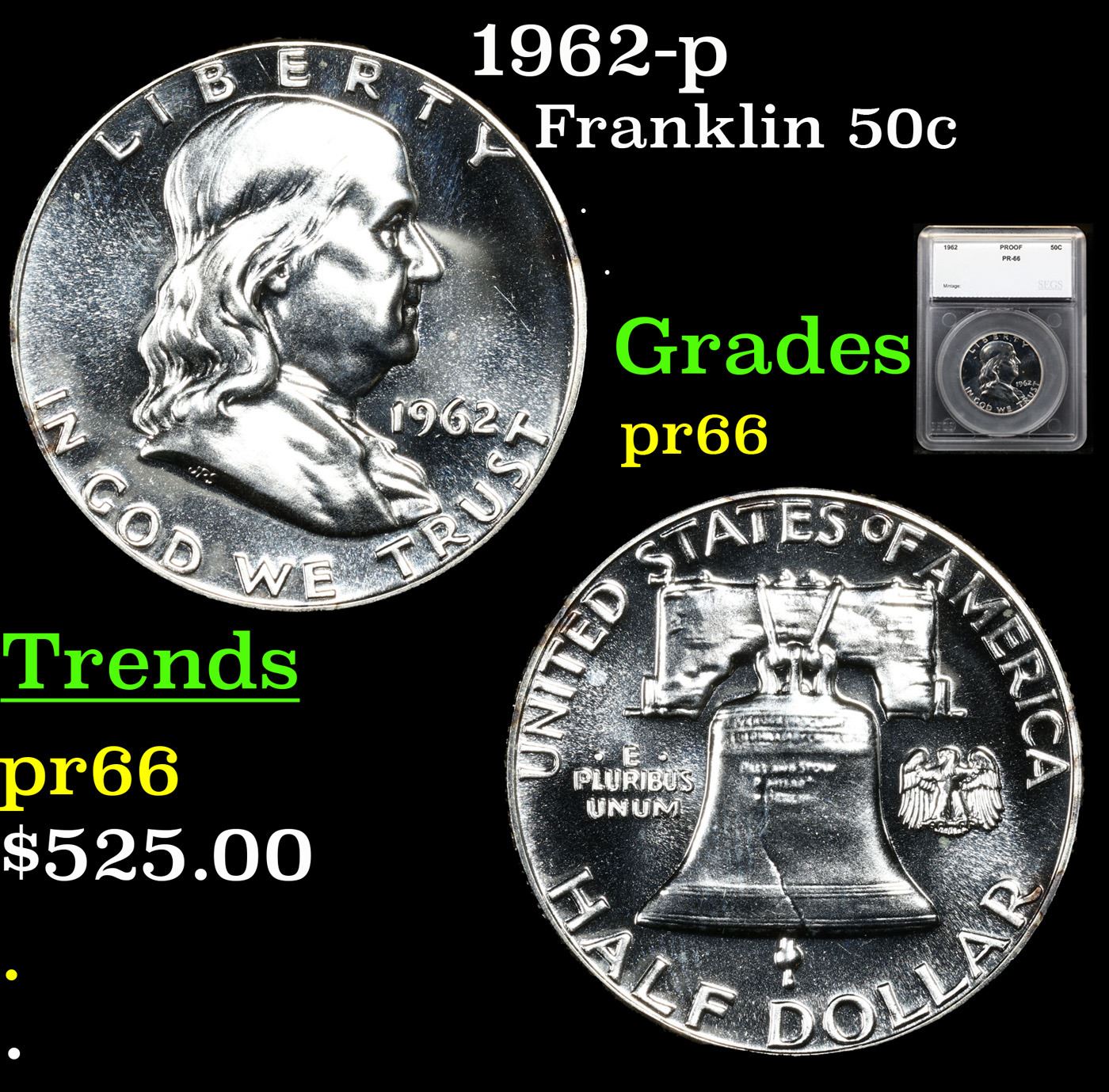 1962-p Franklin Half Dollar 50c Graded pr66 By SEGS.