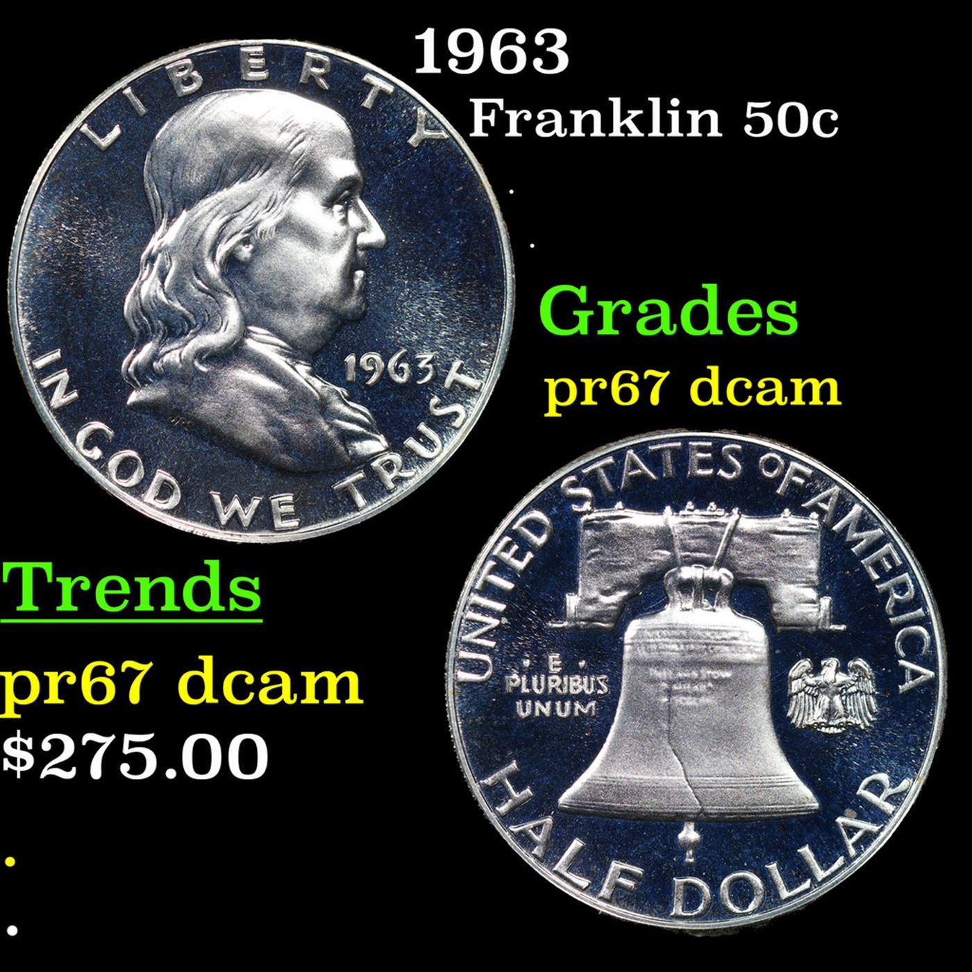 1963 Franklin Half Dollar 50c Grades GEM++ Proof Deep Cameo.