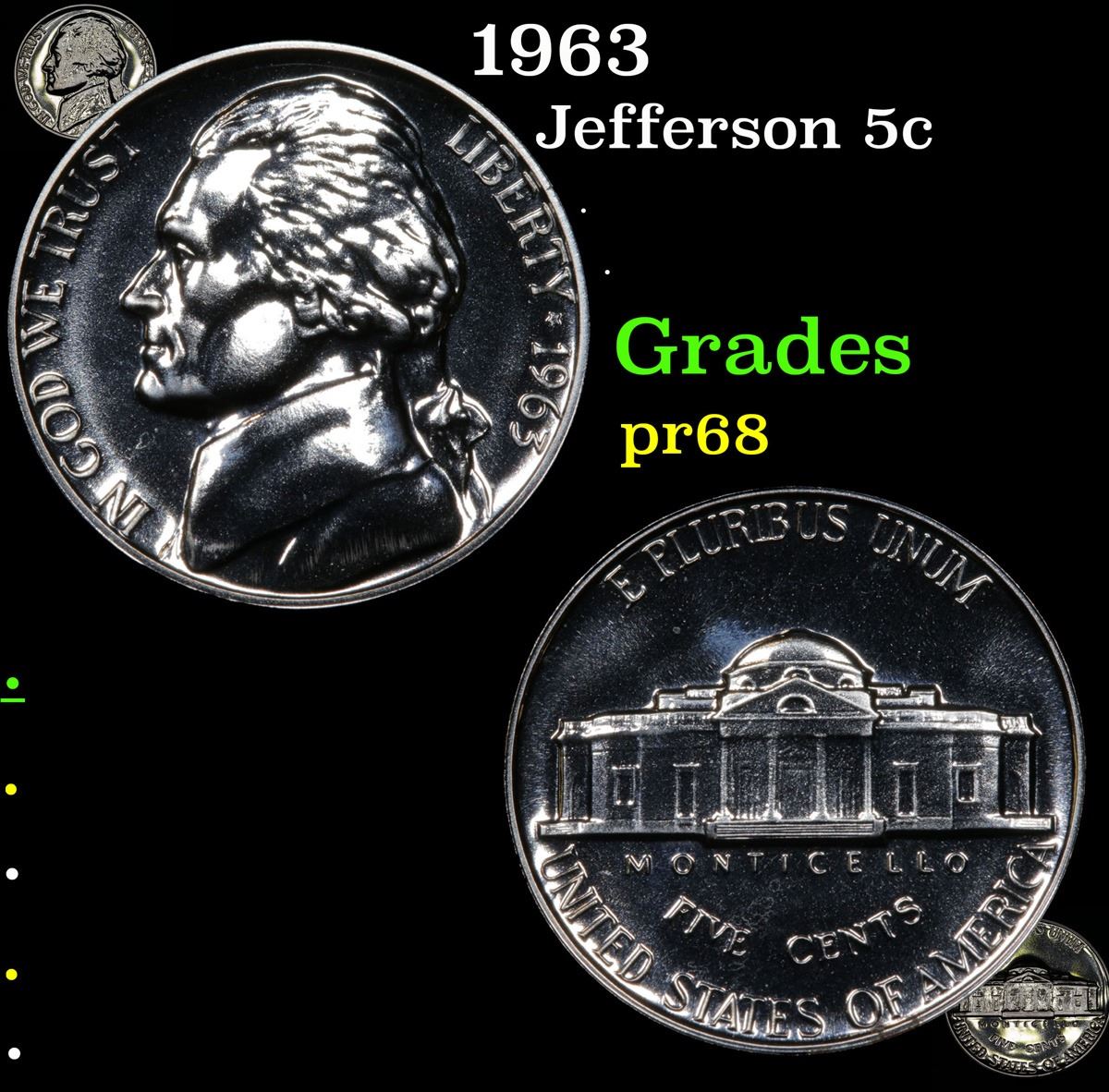 1963 Jefferson Nickel 5c Grades GEM++ Proof.