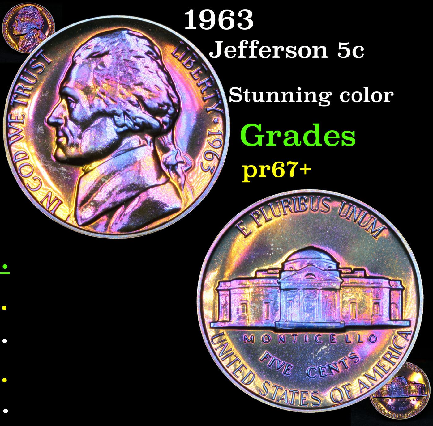 1963 Jefferson Nickel 5c Grades GEM++ Proof.