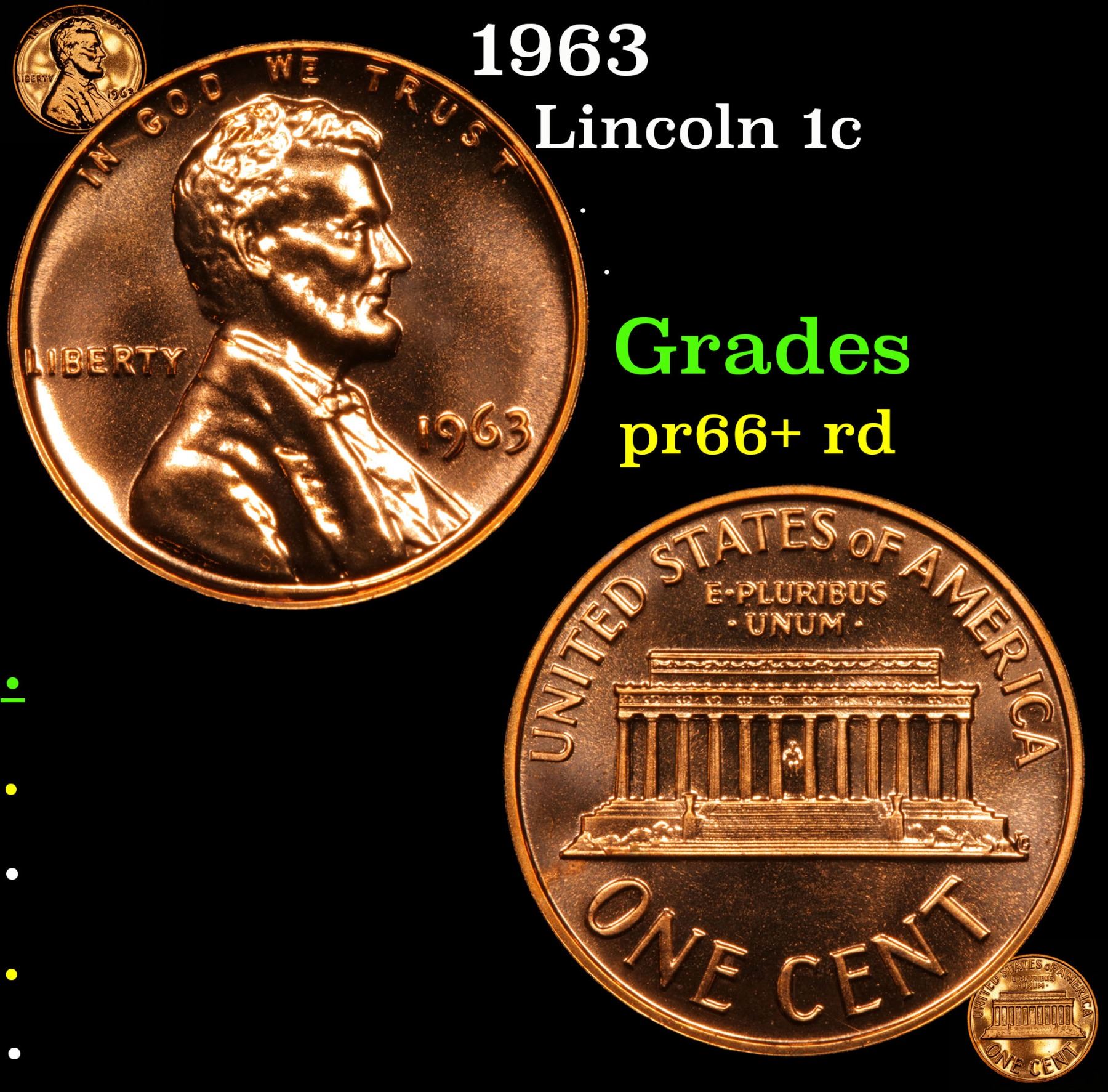 1963 Lincoln Cent 1c Grades Gem+= Proof Red.