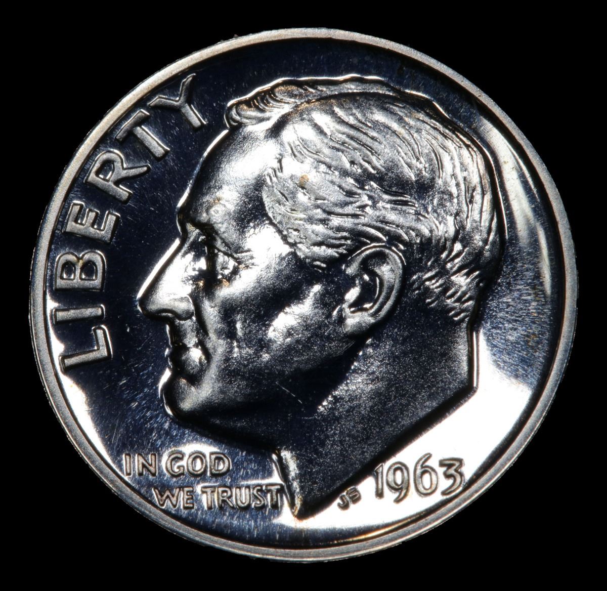 1963 Roosevelt Dime 10c Grades GEM++ Proof.