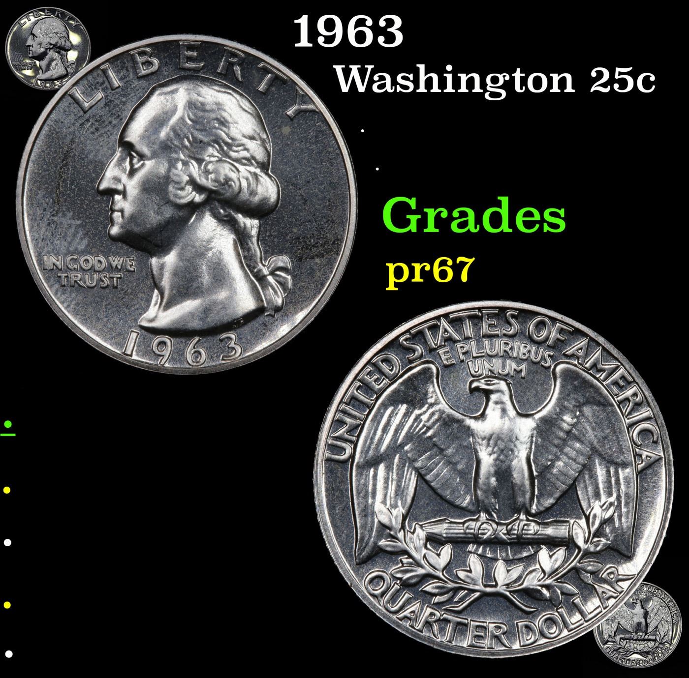 1963 Washington Quarter 25c Grades GEM++ Proof.