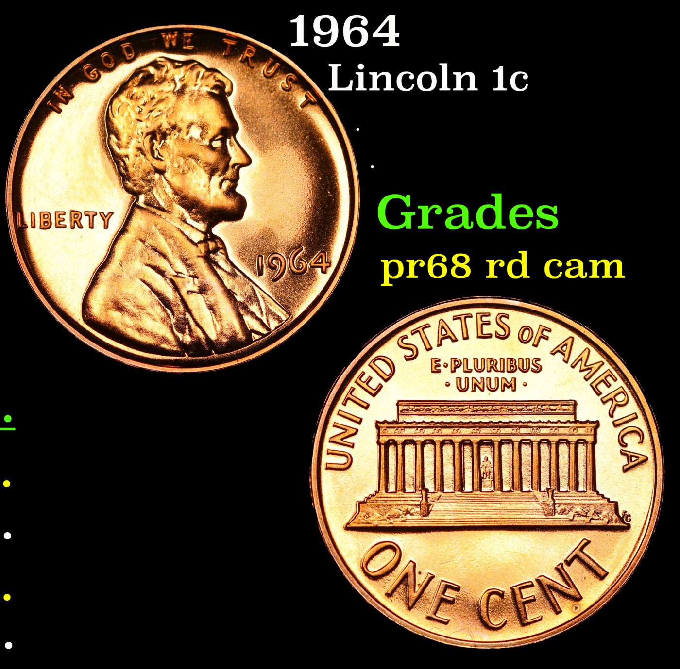 1964 Lincoln Cent 1c Grades Gem++ Proof Red Cameo.