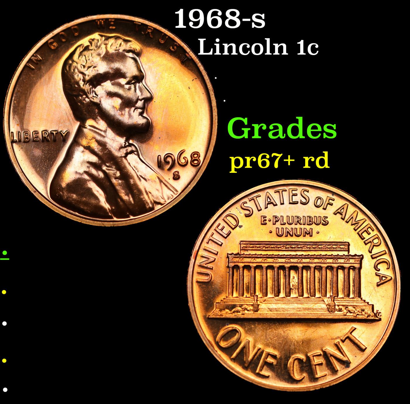 1968-s Lincoln Cent 1c Grades Gem++ Proof Red.