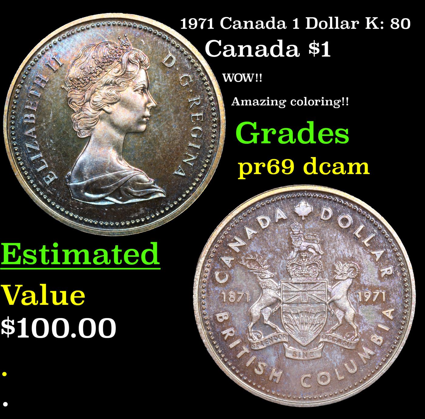 1971 Canada 1 Dollar K: 80 Grades GEM++ Proof Deep Cameo.