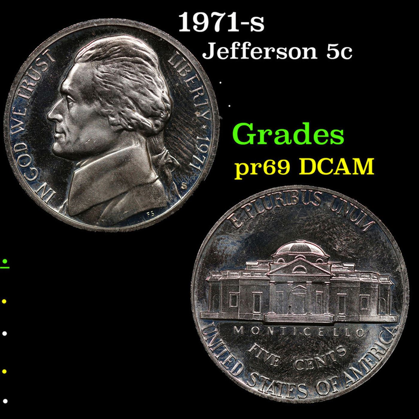 1971-s Jefferson Nickel 5c Grades GEM++ Proof Deep Cameo.