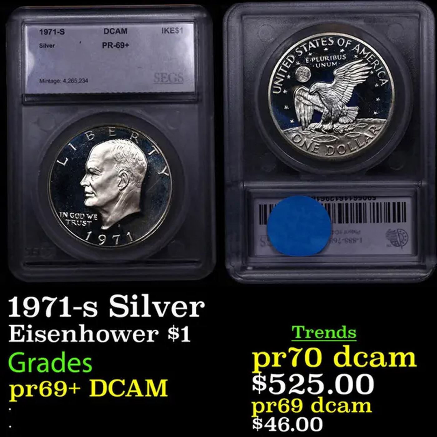 1971-s Silver Eisenhower Dollar $1 Graded ms69+ dmpl By SEGS.