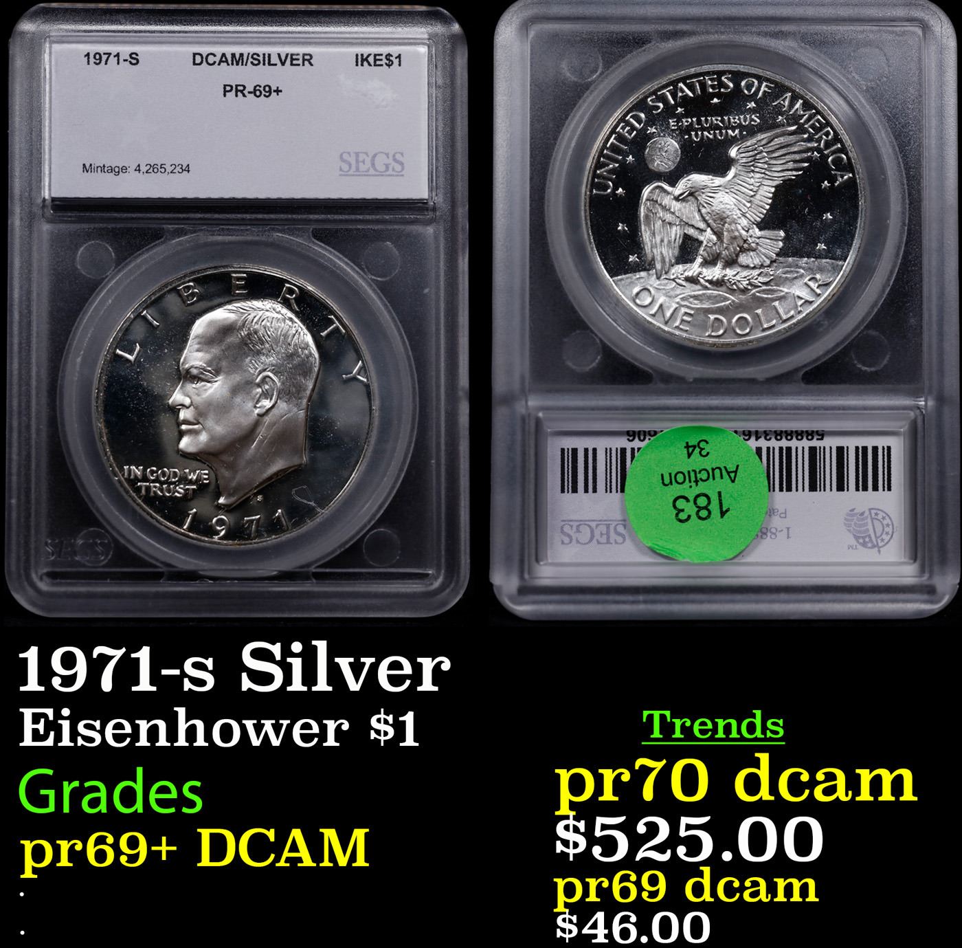 1971-s Silver Eisenhower Dollar $1 Graded pr69+ DCAM By SEGS.