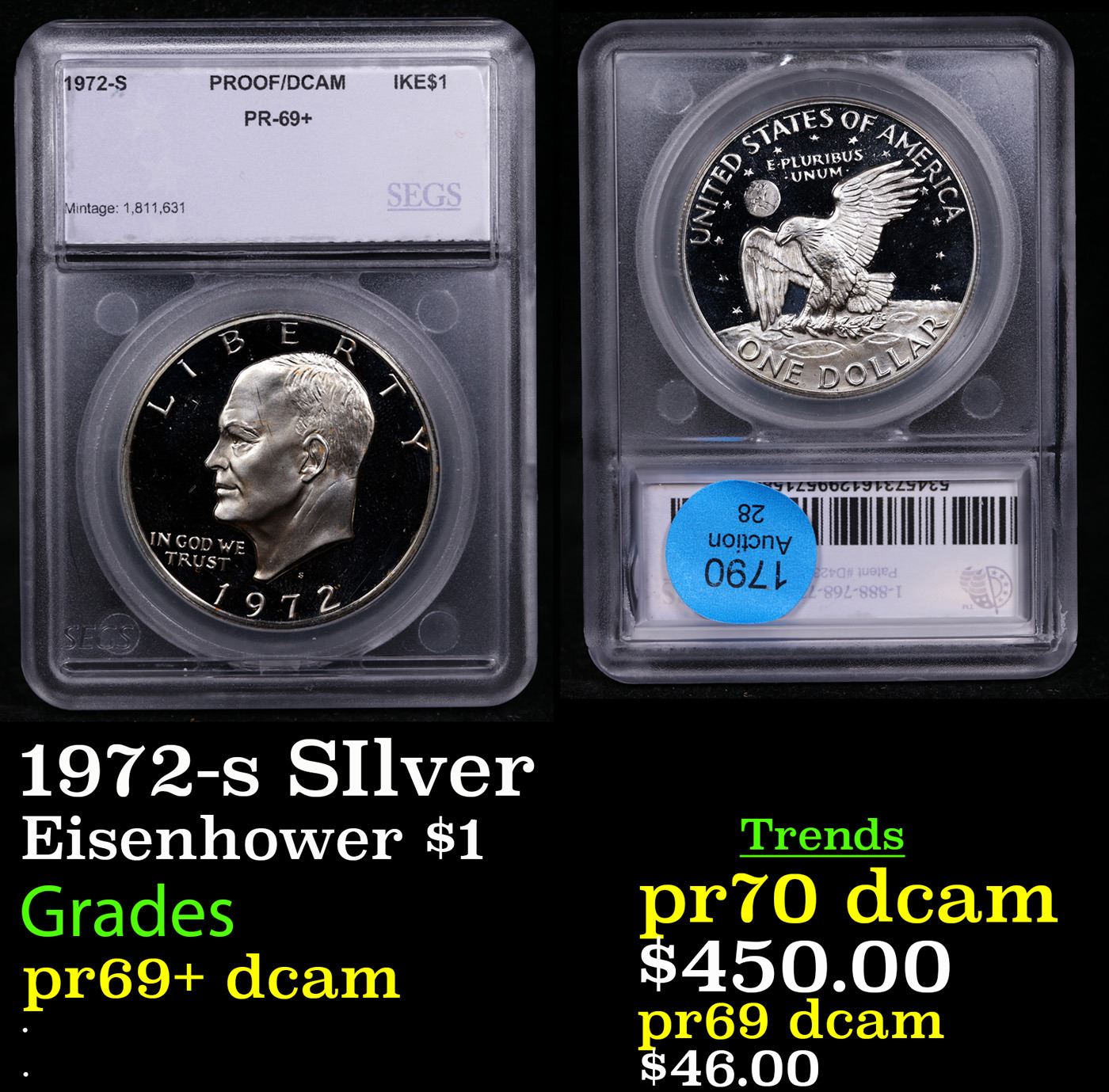 1972-s SIlver Eisenhower Dollar $1 Graded pr69+ dcam By SEGS. 0