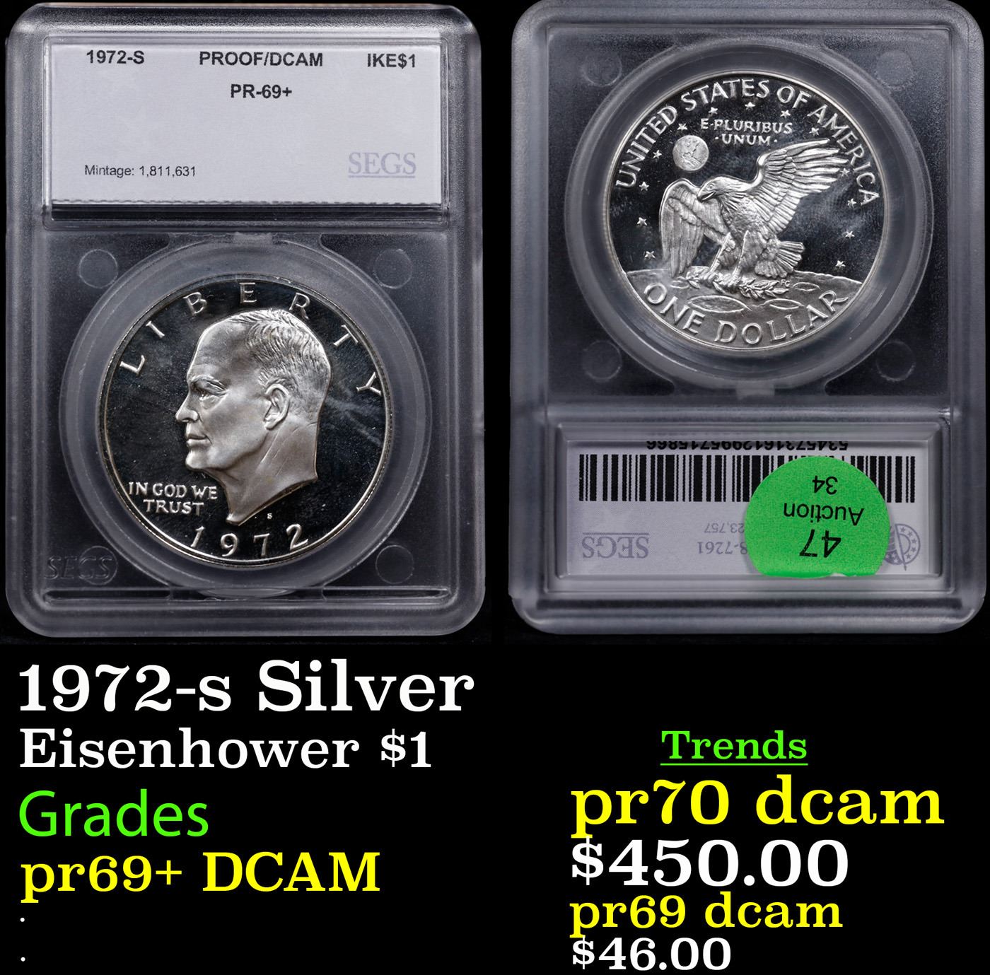 1972-s Silver Eisenhower Dollar $1 Graded pr69+ DCAM By SEGS.