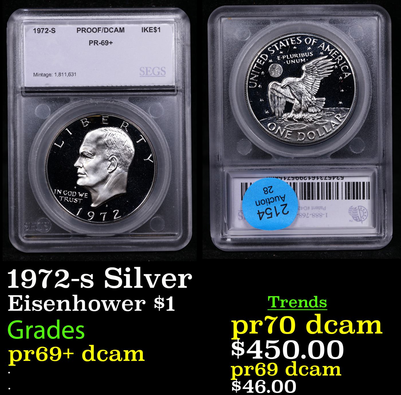1972-s Silver Eisenhower Dollar $1 Graded pr69+ dcam By SEGS. 0