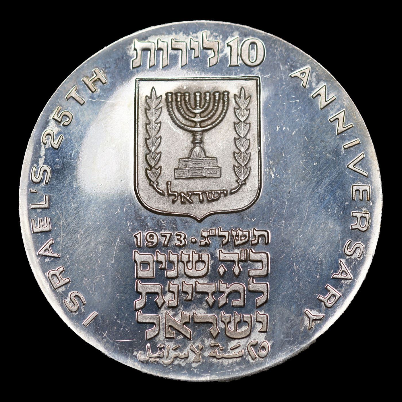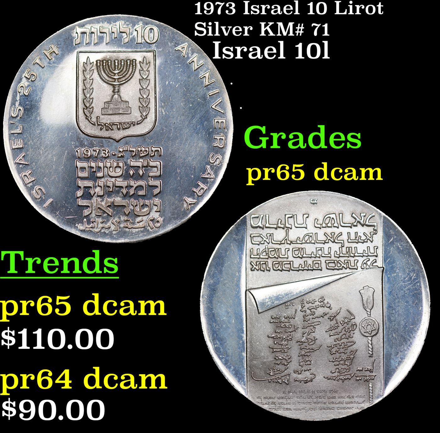 1973 Israel 10 Lirot Silver KM# 71 Grades GEM Proof Deep Cameo.