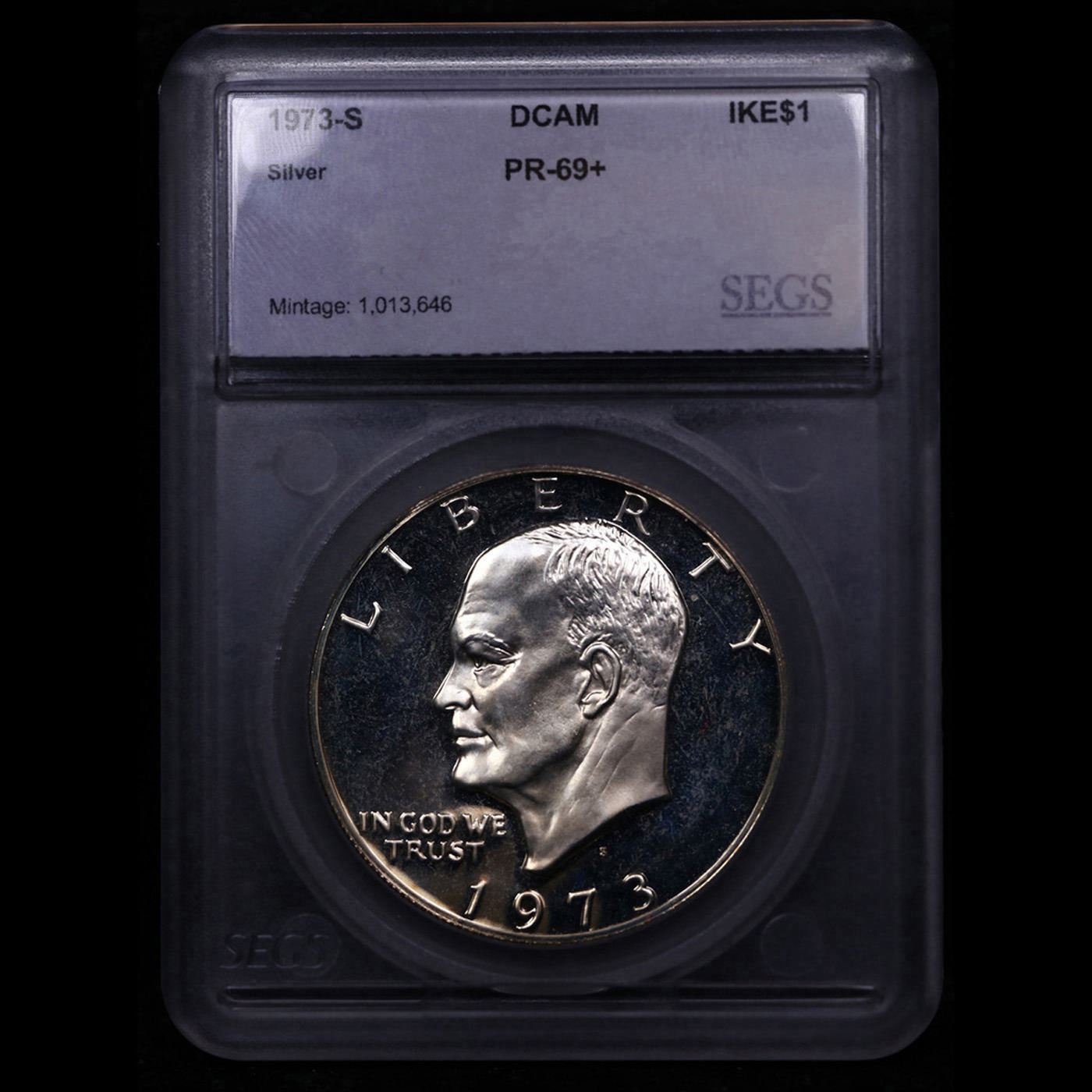 1973-s Silver Eisenhower Dollar $1 Graded pr69+ DCAM BY SEGS.