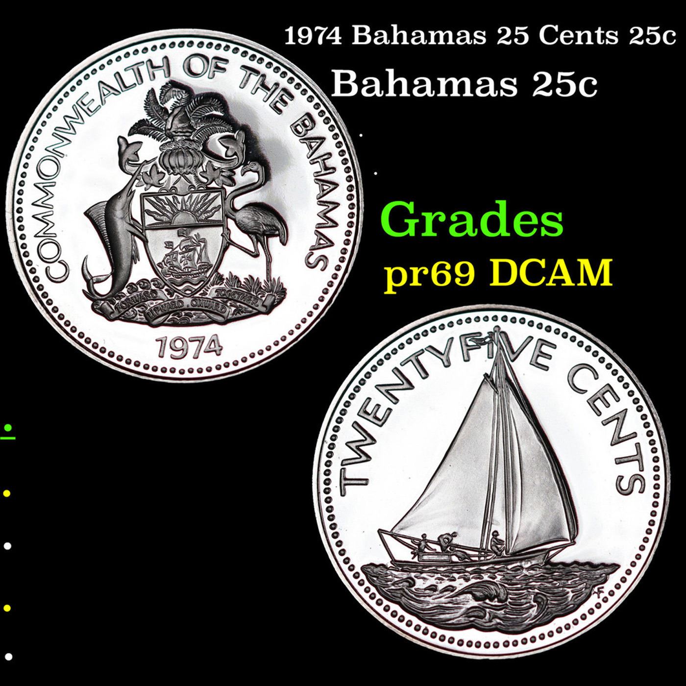 1974 Bahamas 25 Cents 25c Grades GEM++ Proof Deep Cameo.