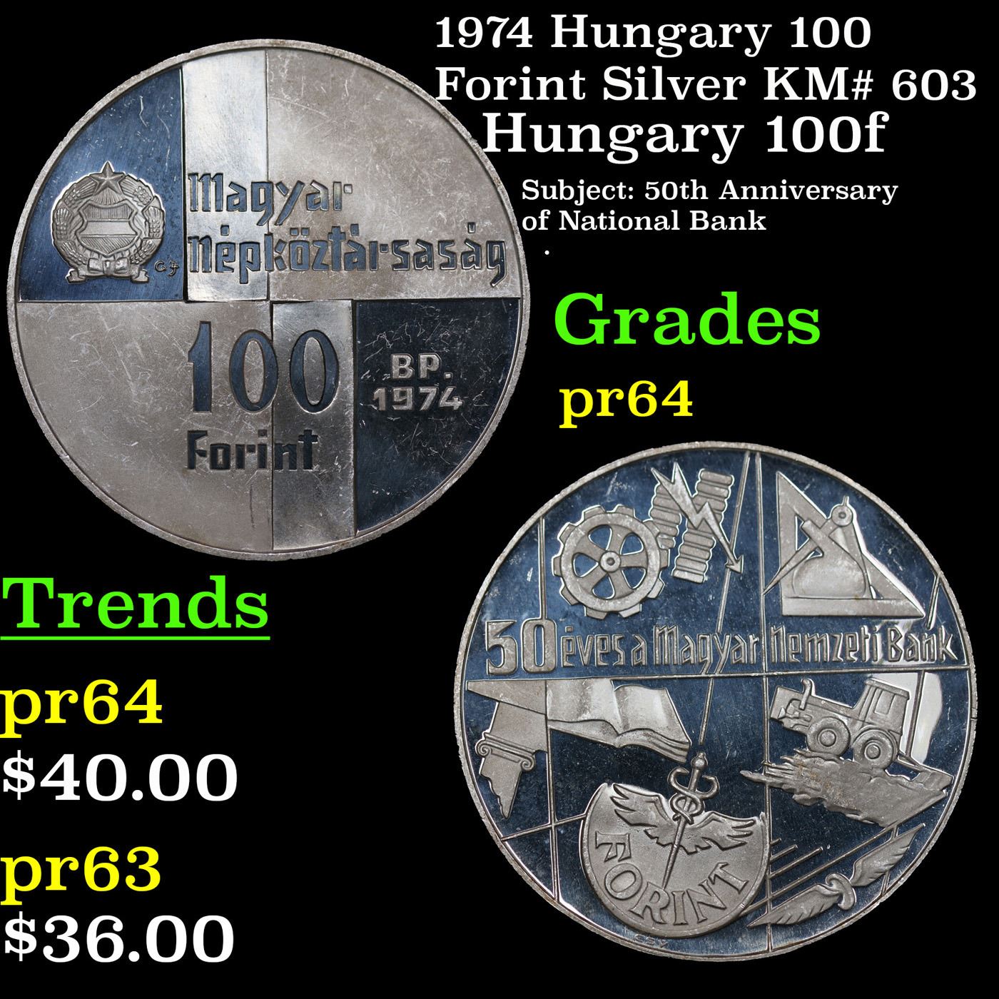 1974 Hungary 100 Forint Silver KM# 603 Grades Choice Proof.