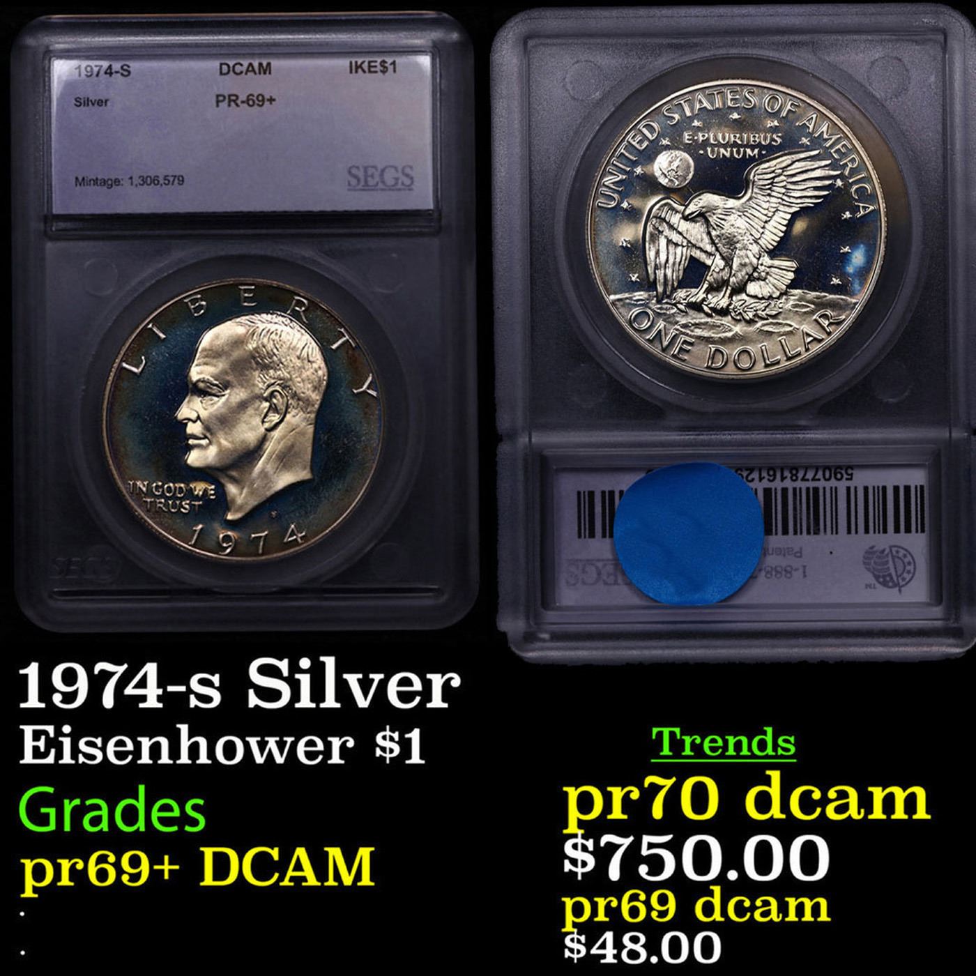 1974-s Silver Eisenhower Dollar $1 Graded ms69+ dmpl By SEGS.
