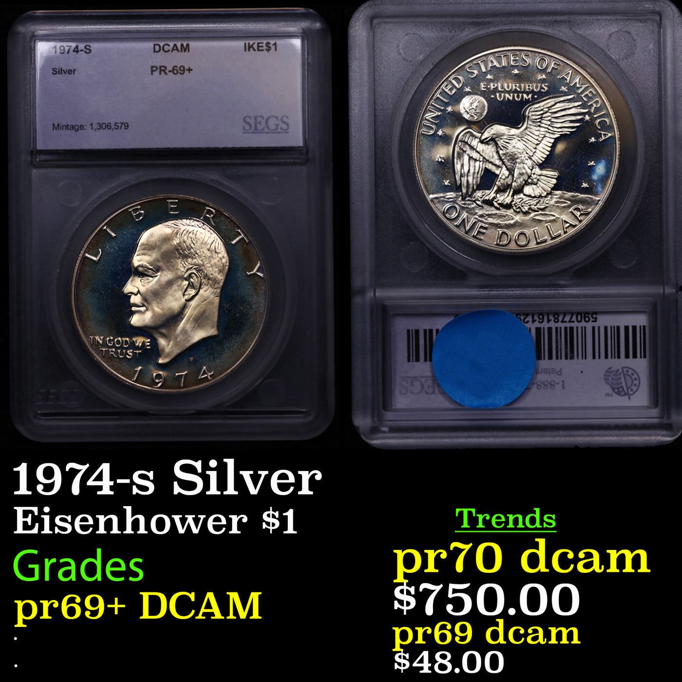 1974-s Silver Eisenhower Dollar $1 Graded pr69+ DCAM BY SEGS.