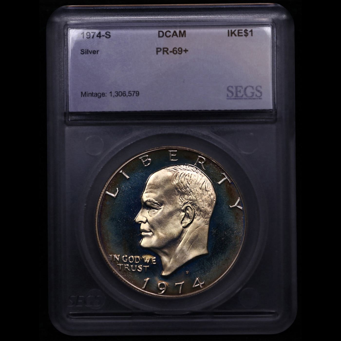 1974-s Silver Eisenhower Dollar $1 Graded pr69+ DCAM BY SEGS.