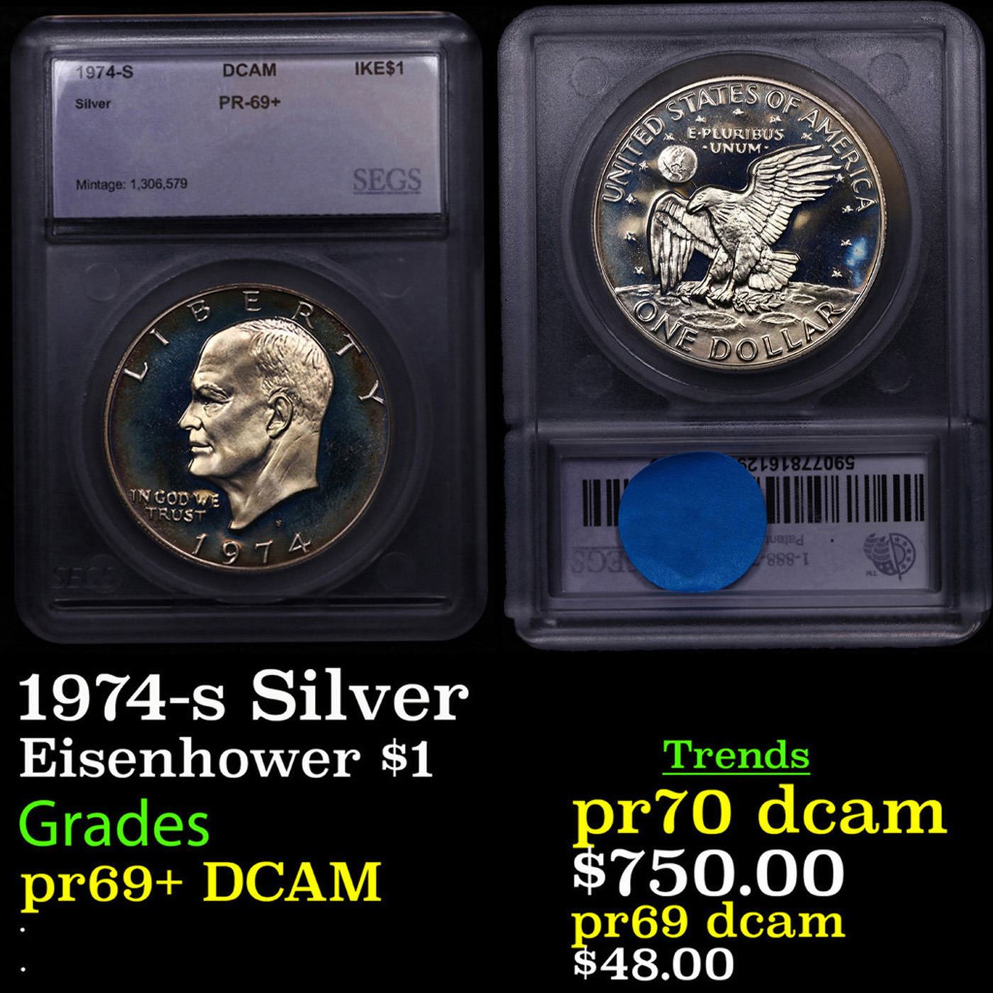1974-s Silver Eisenhower Dollar $1 Graded pr69+ dcam By SEGS. 0
